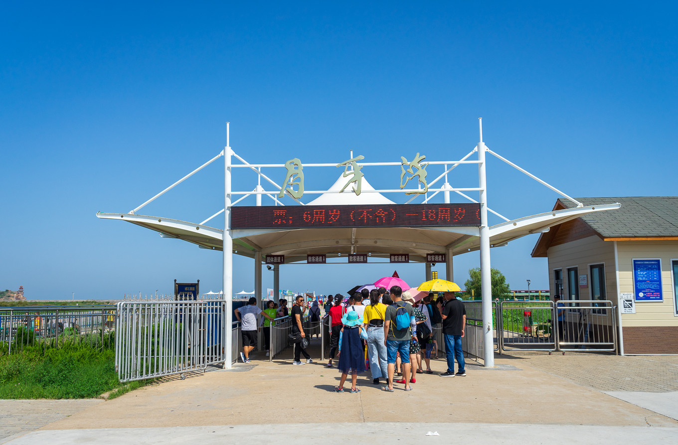 “一彎新月印灘涂,水碧山青舉世無。仙境不須求物外,行人步步踏明珠。”這是著名書法家啟功先生贊美月牙灣的詩句。