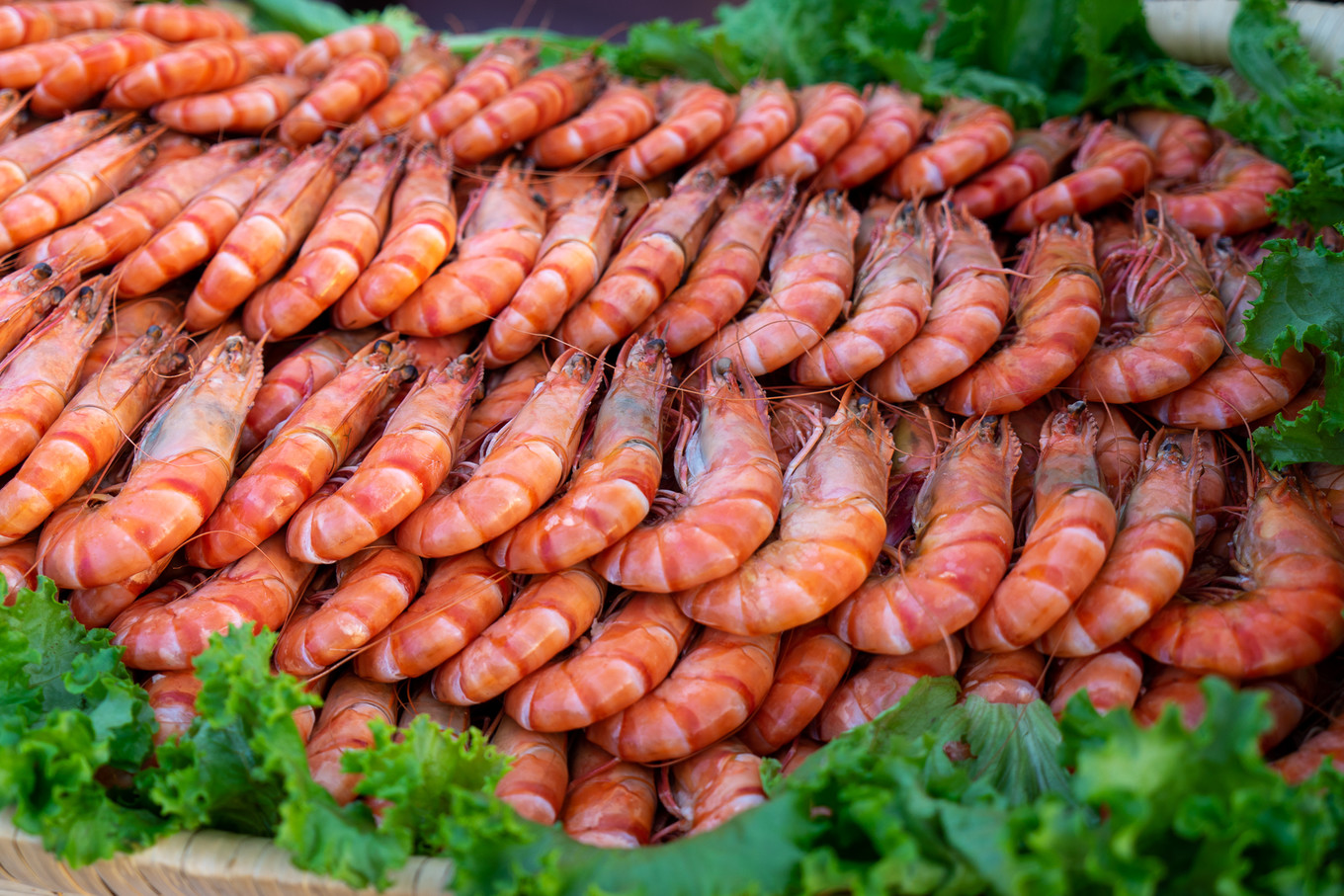 現(xiàn)場造了一只大船,形形色色、種類繁多的海鮮通通放在船上的大簸箕里面,從船頭走到船尾,光看著口水就差點要流出來。