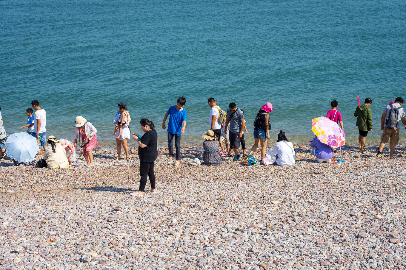 游客們早早的 占據(jù)了海水交會的岸邊。