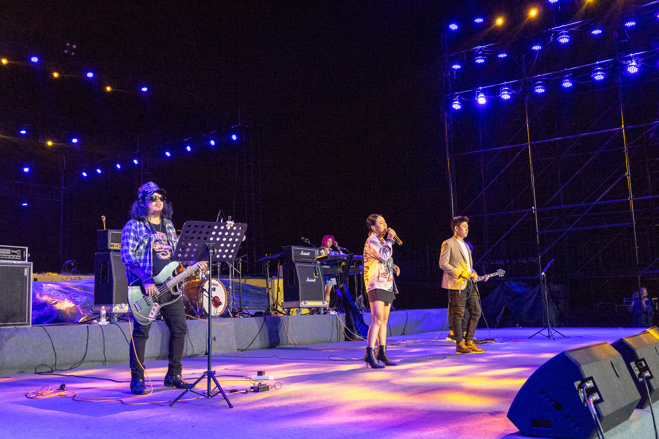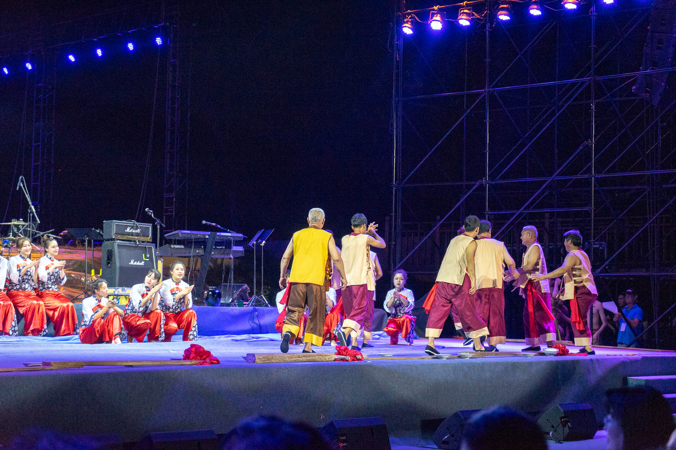 之后夜幕降臨,這頓轟轟烈烈百人共食的海鮮大餐也即將畫上句號。隔壁廣場的音樂聲起,一場熱熱鬧鬧的音樂會也拉開了帷幕。