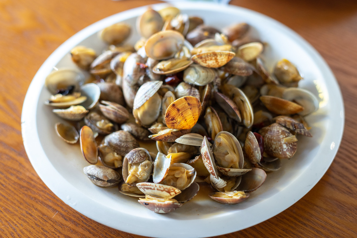 扇貝家??倫壅糁螅椭拙妥銐蝓r美。魷魚我最愛鐵板魷魚,加上厚厚的醬汁,雖說會將海鮮的鮮味略微掩蓋,但是更添烤肉的重口,海鮮擼串兒兩不誤。而蛤蜊,在青島我們總愛讀作“gala”,夏日里的“哈啤酒,吃蛤蜊”可以算是青島的一大景,幾乎全城都被啤酒蛤蜊包圓兒了。