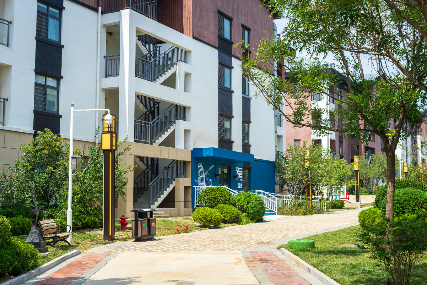 客棧整體像極了一棟聯(lián)排別墅,一棟棟的小樓之間,綠樹茵茵,環(huán)境極佳。
