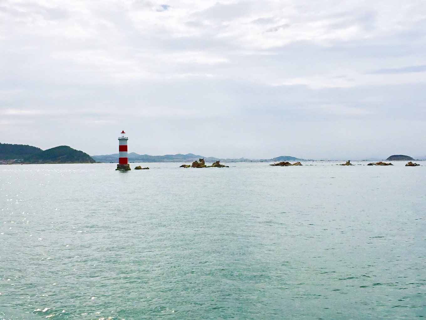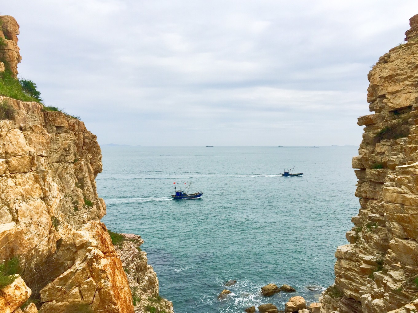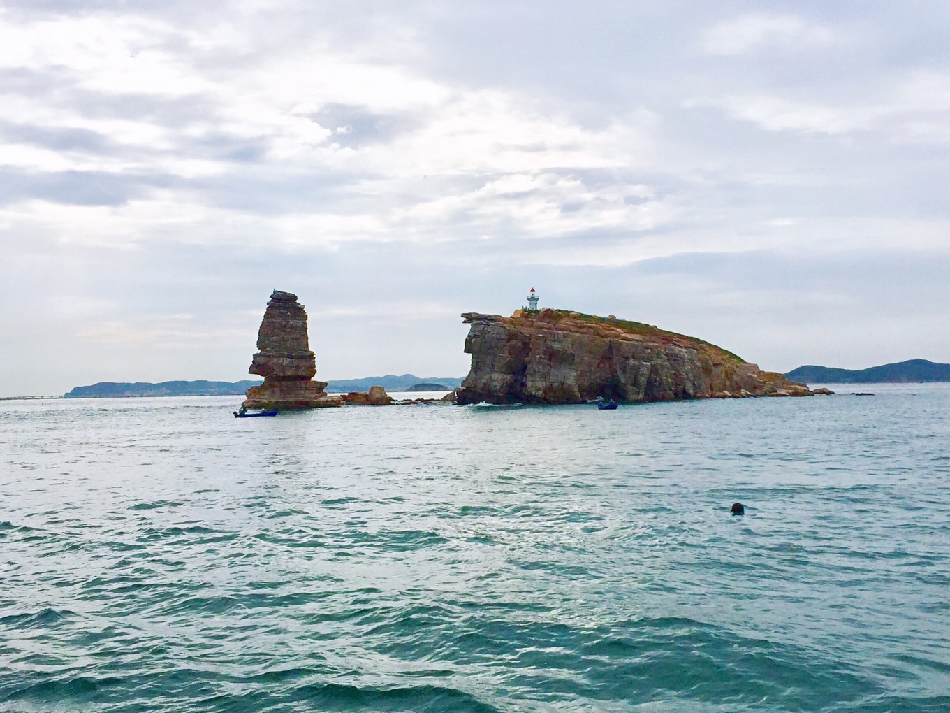 前面就是蓬萊田橫山,也是黃渤海分界線的標志。