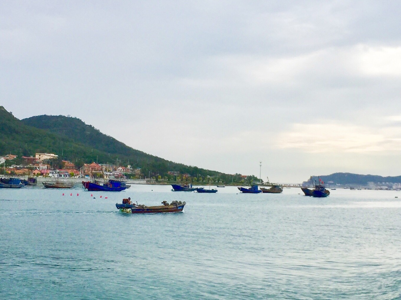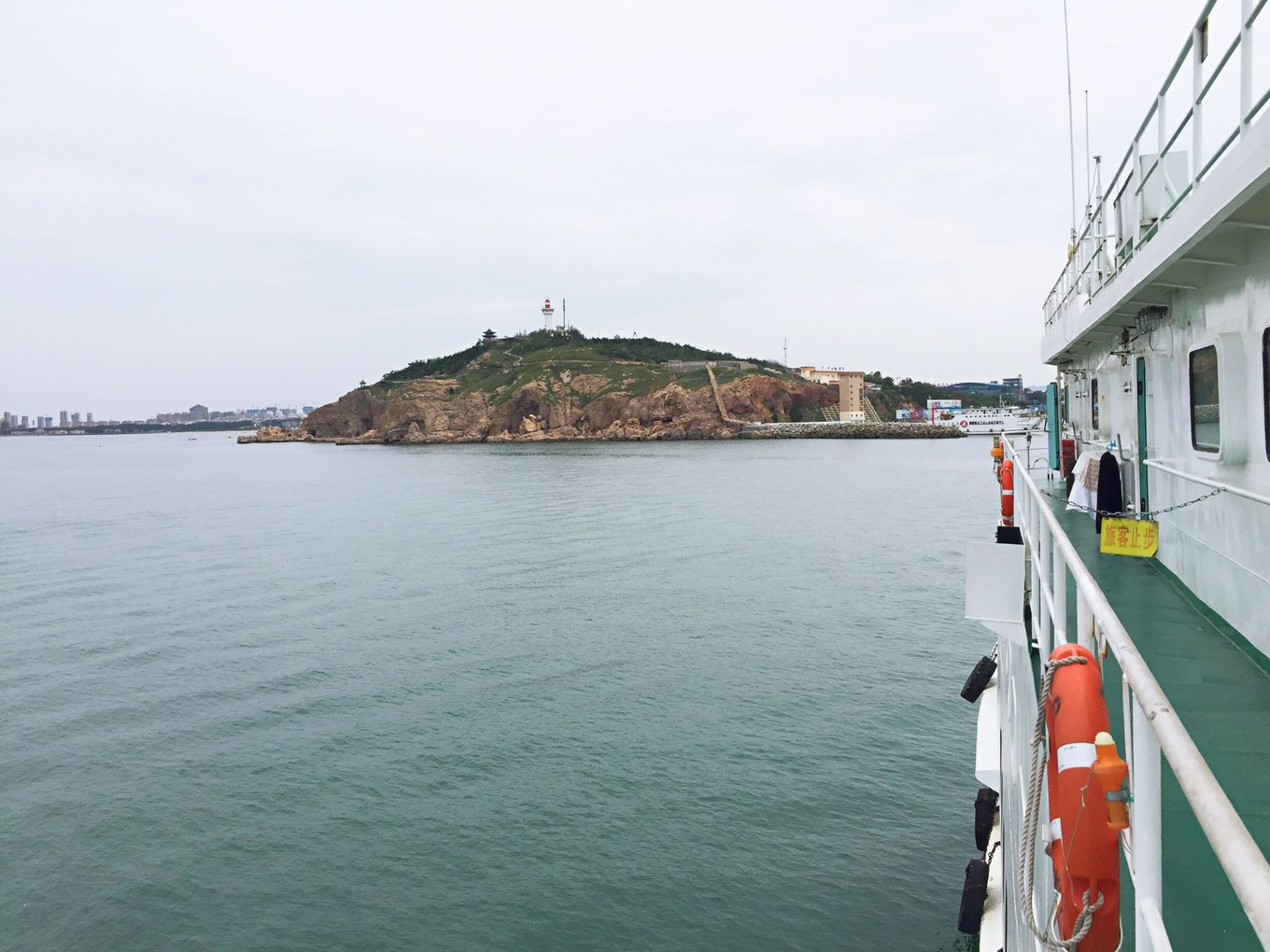 開始起航駛離長島港,長島是一個海島縣,有32個島嶼與8700平方千米海域面積組成,其中有居民的島嶼10個。南長島和北長島是長島縣唯一相連的兩個島嶼,其他均為獨立島嶼。今天我們的路線是長島——大黑山島——廟島。