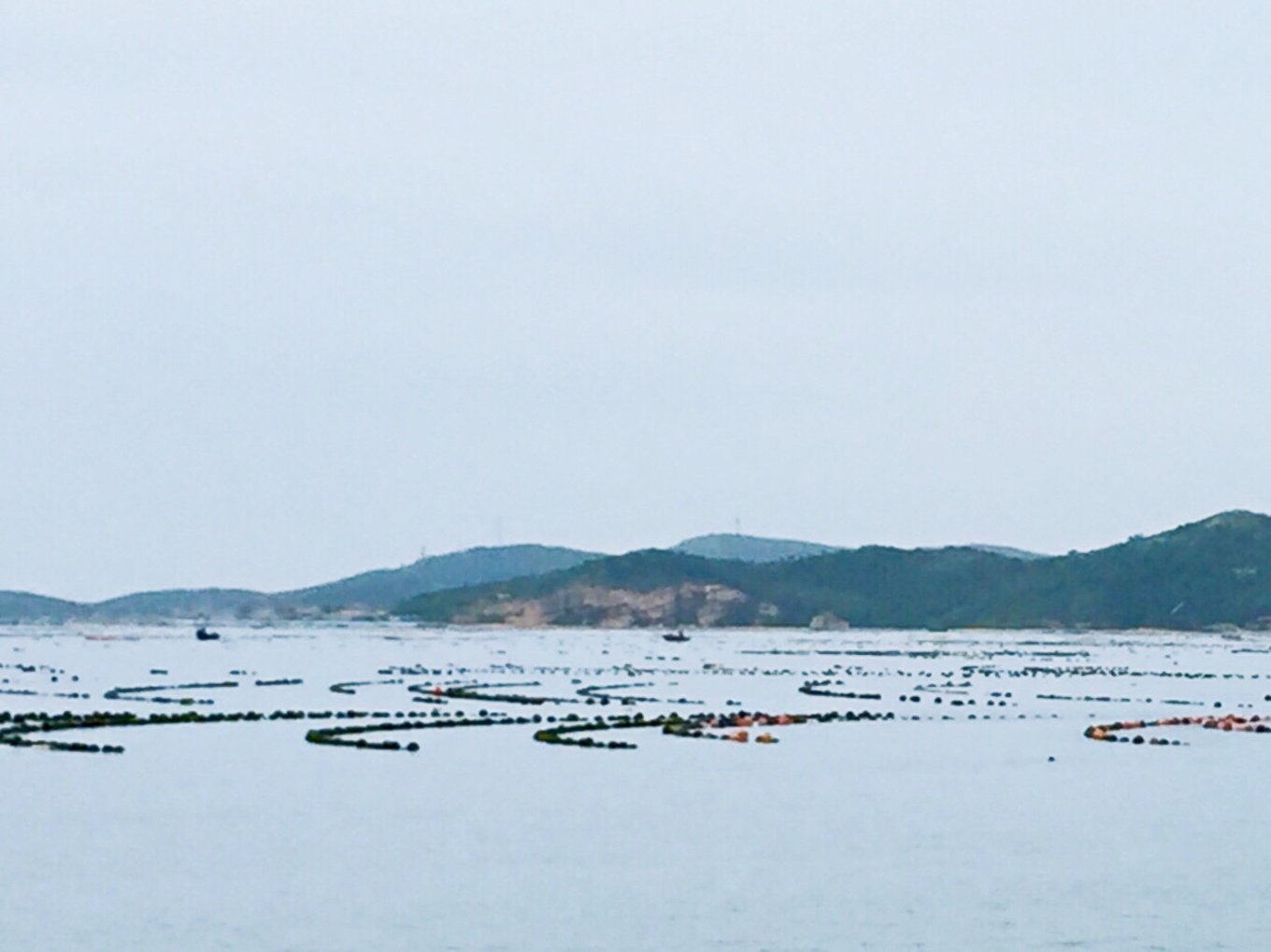 海面上一排排黑色的、紅色的浮漂是漁民用來養(yǎng)殖各種海珍品的,就像陸地上種莊稼一樣。稱為海上牧場,一般最上面的是海帶,中間是扇貝,海底是海參和鮑魚。由于其產量大,所以長島被稱為扇貝之鄉(xiāng),鮑魚之鄉(xiāng),海帶之鄉(xiāng)。