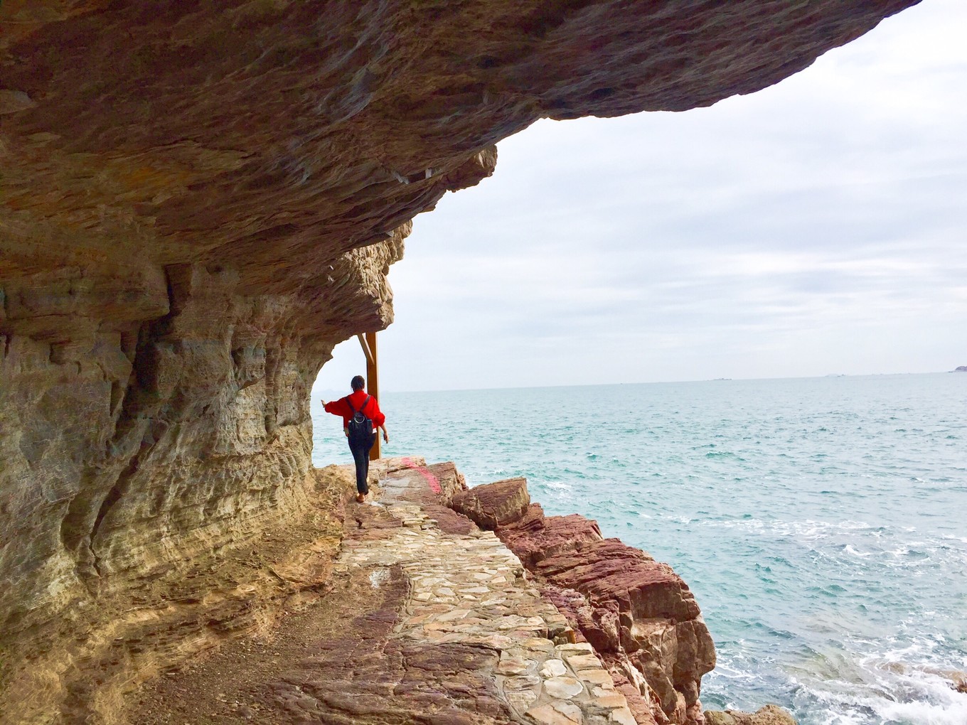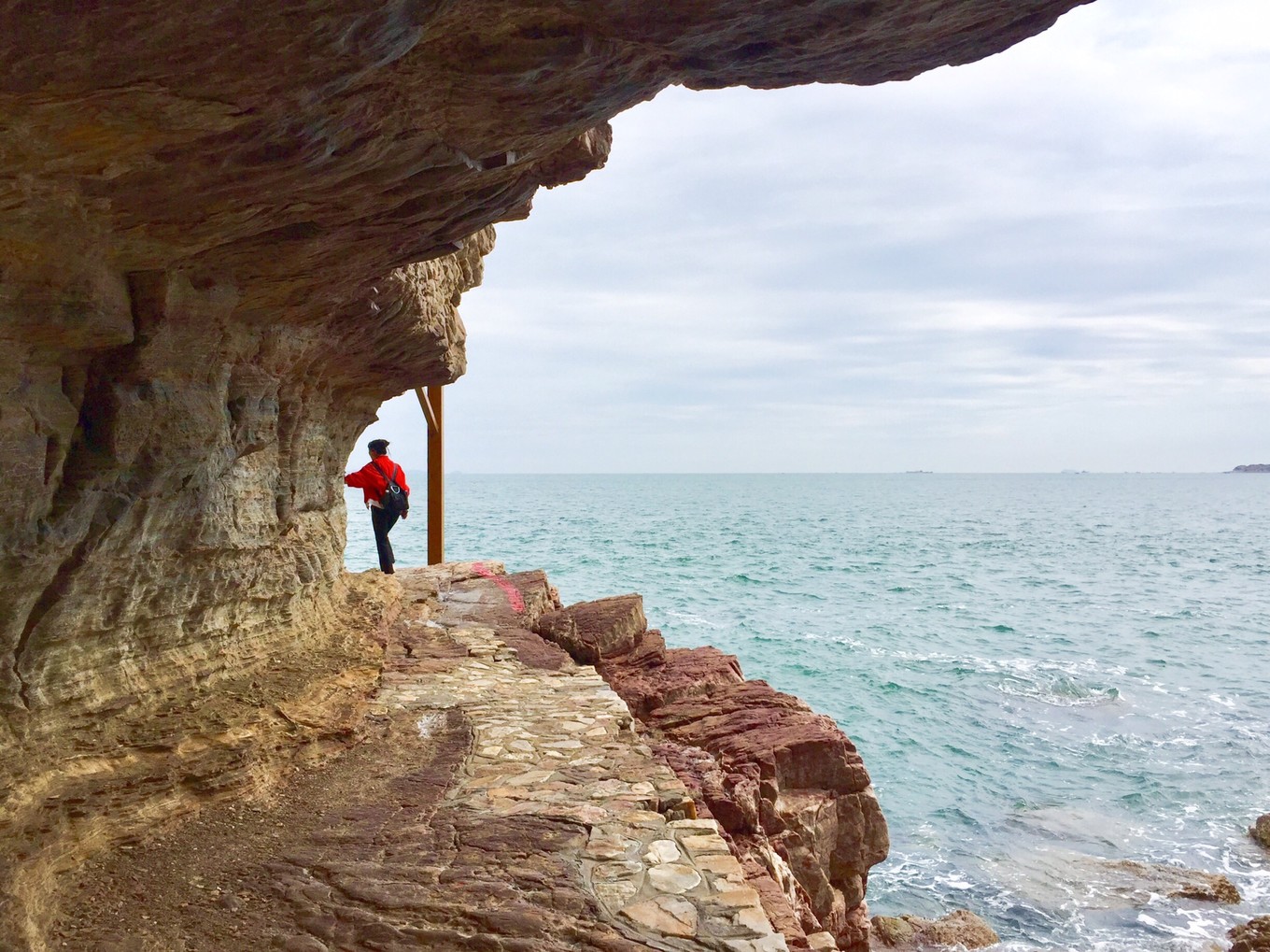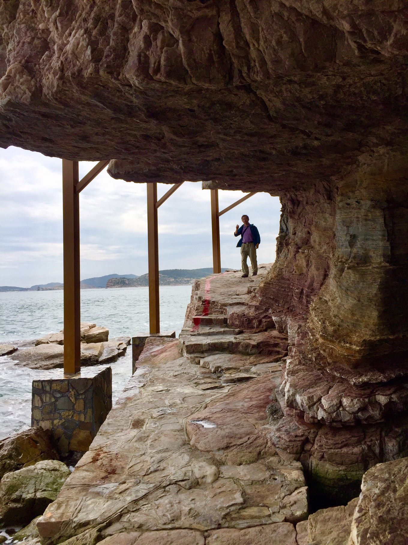 聚仙洞被譽為“北方第一海蝕洞”,此洞高出海面20米,深50多米,入口較窄,里面豁然寬敝,當?shù)厝朔Q“聚仙堂”,傳說是當年八仙相聚的地方。因為怕蛇,我只在門口探頭看看,沒敢進洞。