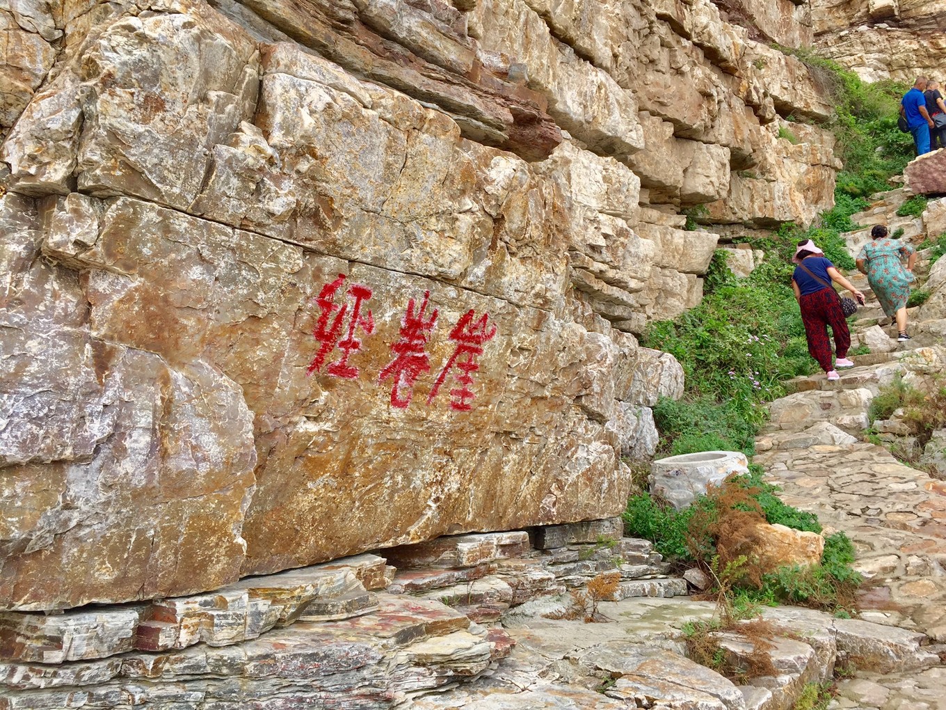 層層疊巖像摞起來竹卷經書一樣,故名經卷崖。傳說八仙過海中的曹國舅成仙后不忘修身,來此定居,每日閱覽經書參禪悟道,所以給世人留下這滿山崖的經卷。