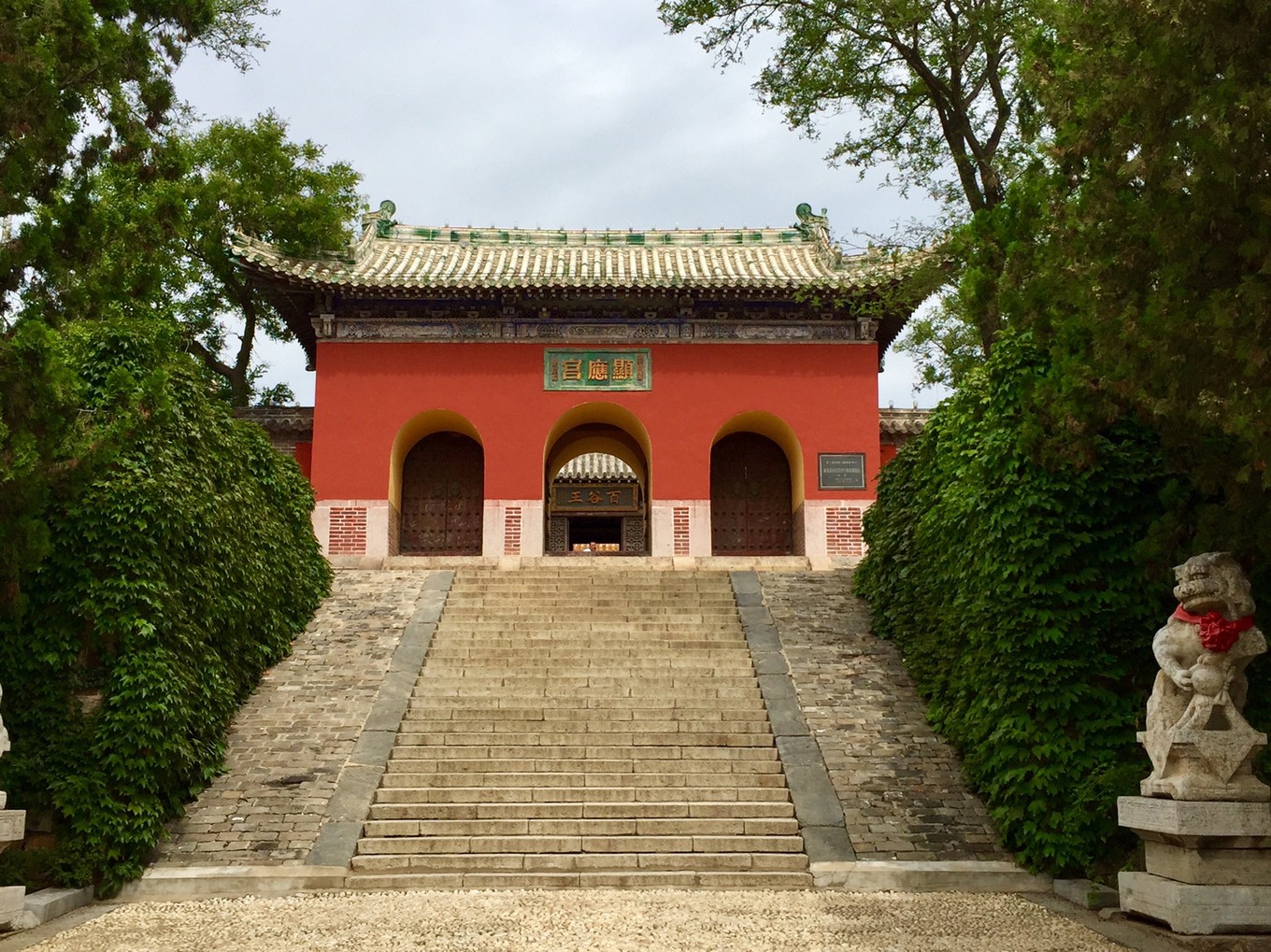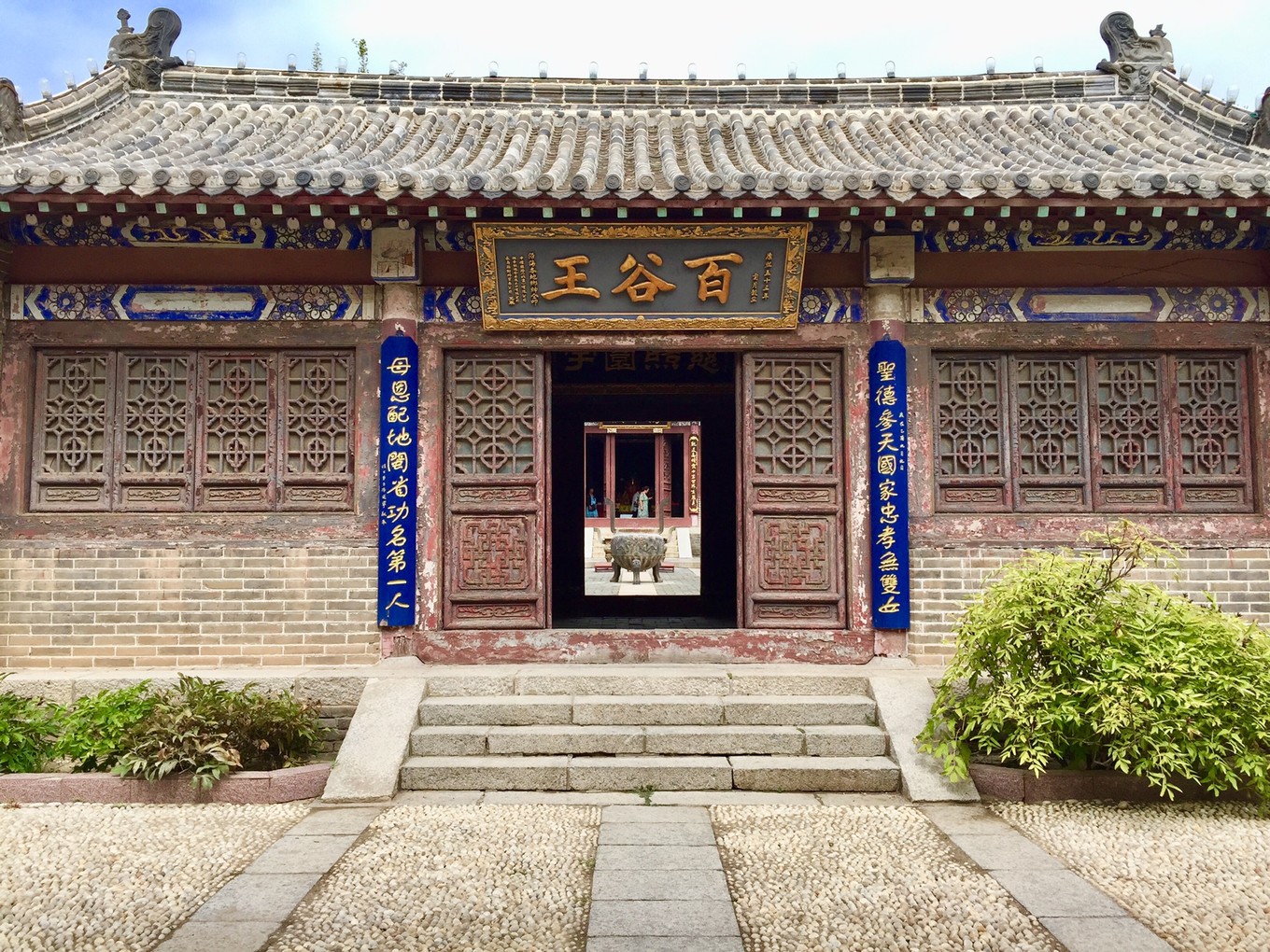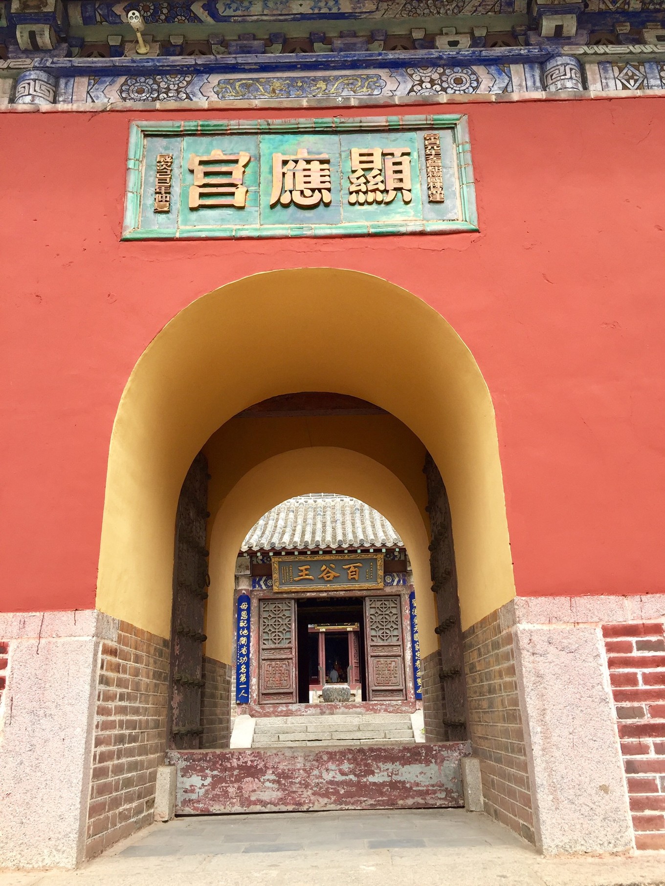 穿過顯應宮的門洞是前殿,上懸“百谷王”匾額,系清朝康熙年間一些紳士捐款重修前殿時制作。