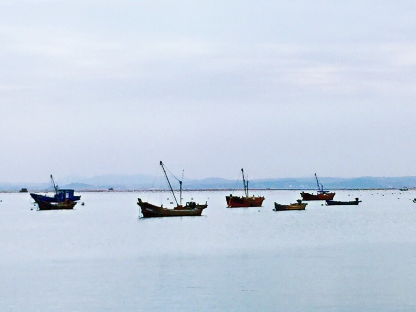 忙碌的漁船成為海上的風景。