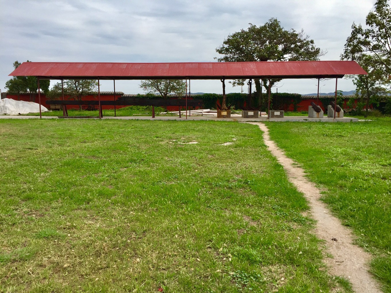 進入大門右手廣場上陳列著甲武海戰(zhàn)的戰(zhàn)船殘骸及火炮。