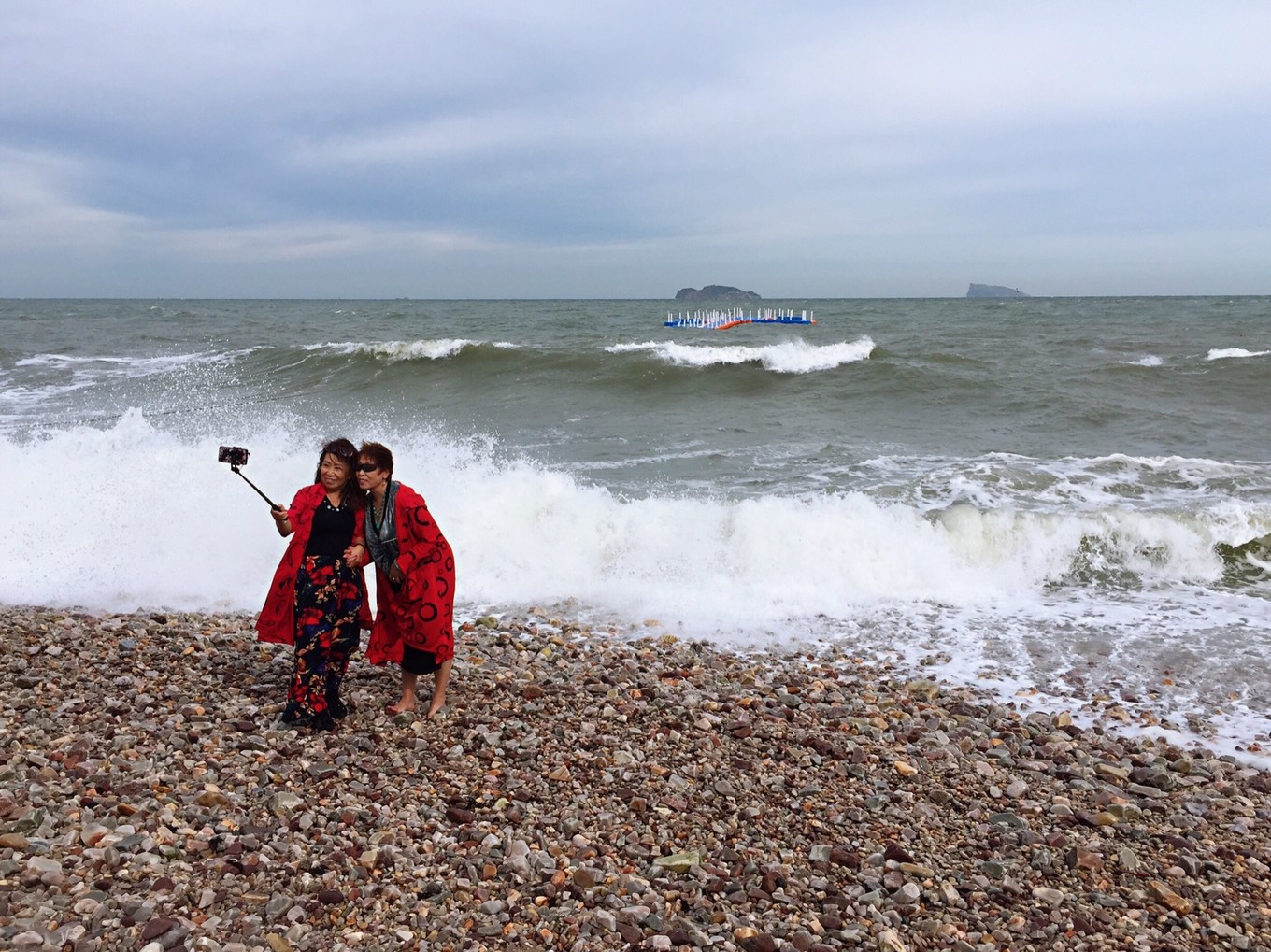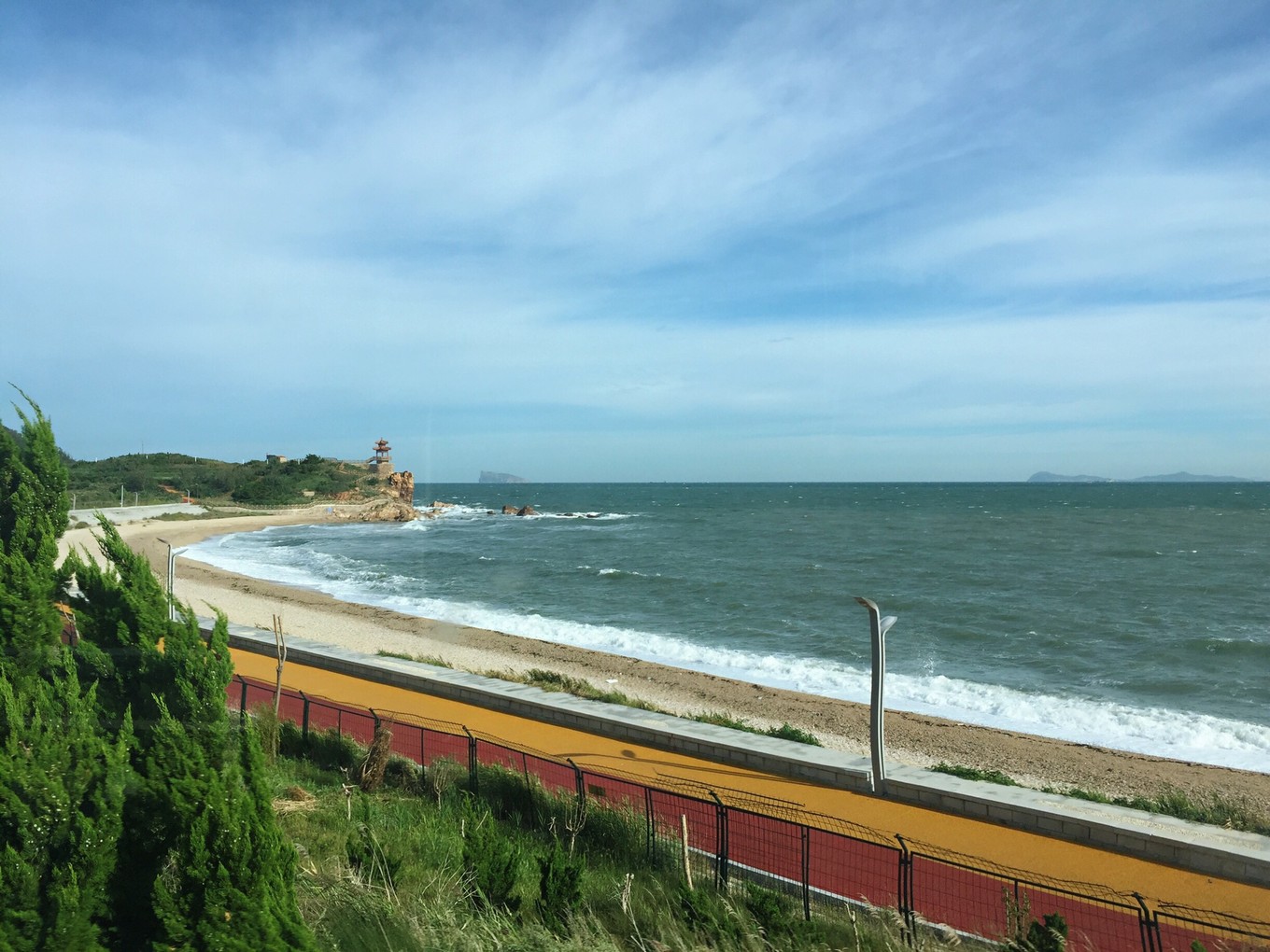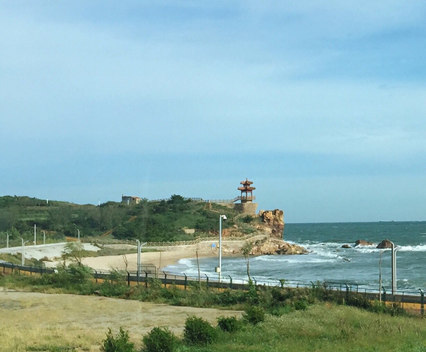 早上六點多鐘,站在山水云禾宿三樓向外看,今天天氣不錯,急忙與老板聯(lián)系問有無出海游船,答曰:因臺風(fēng)玲玲影響,今天海上陣風(fēng)8級,長島海上游今天繼續(xù)停航。沒有其他選擇,今天只能先游九丈崖和月牙灣,寄希望于明天的海上游能成行。