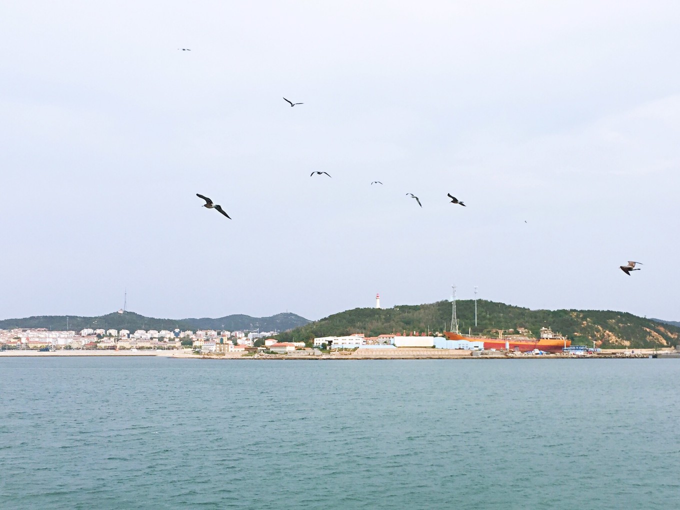 就這樣,45分鐘的航程,海鷗逆風(fēng)而翔,一路相隨,成為客輪上的一道風(fēng)景線。