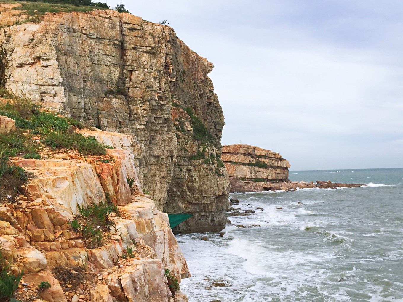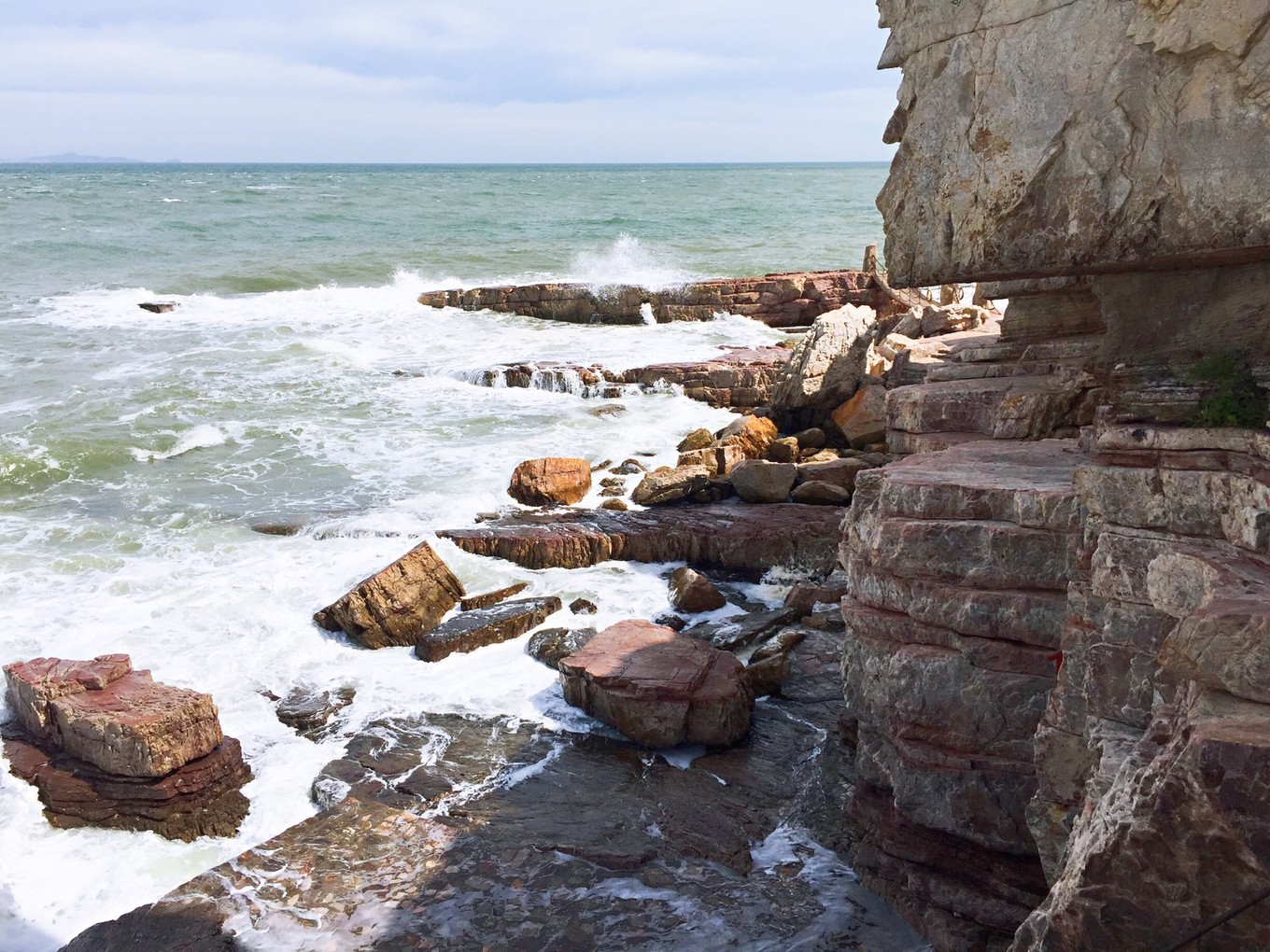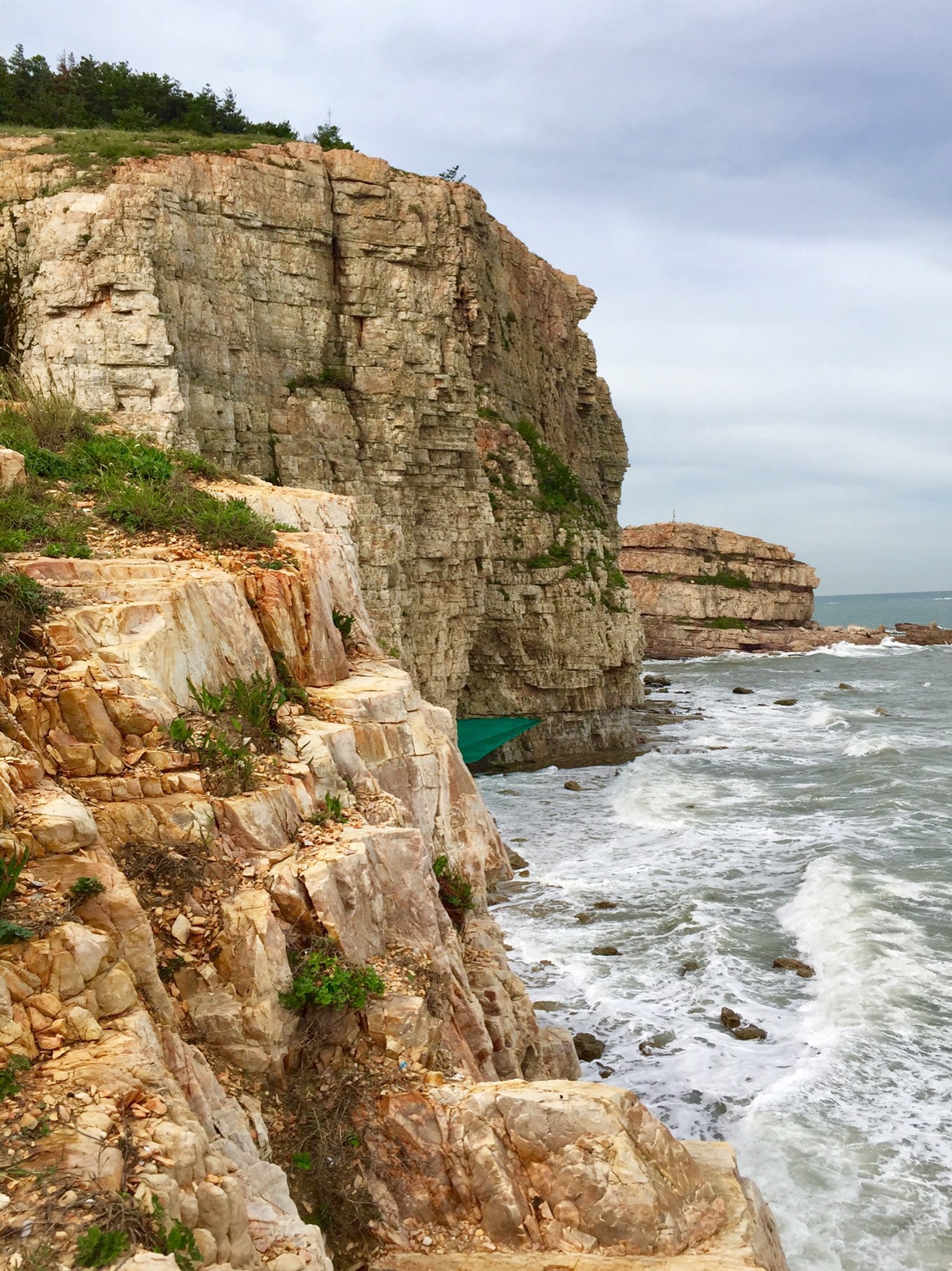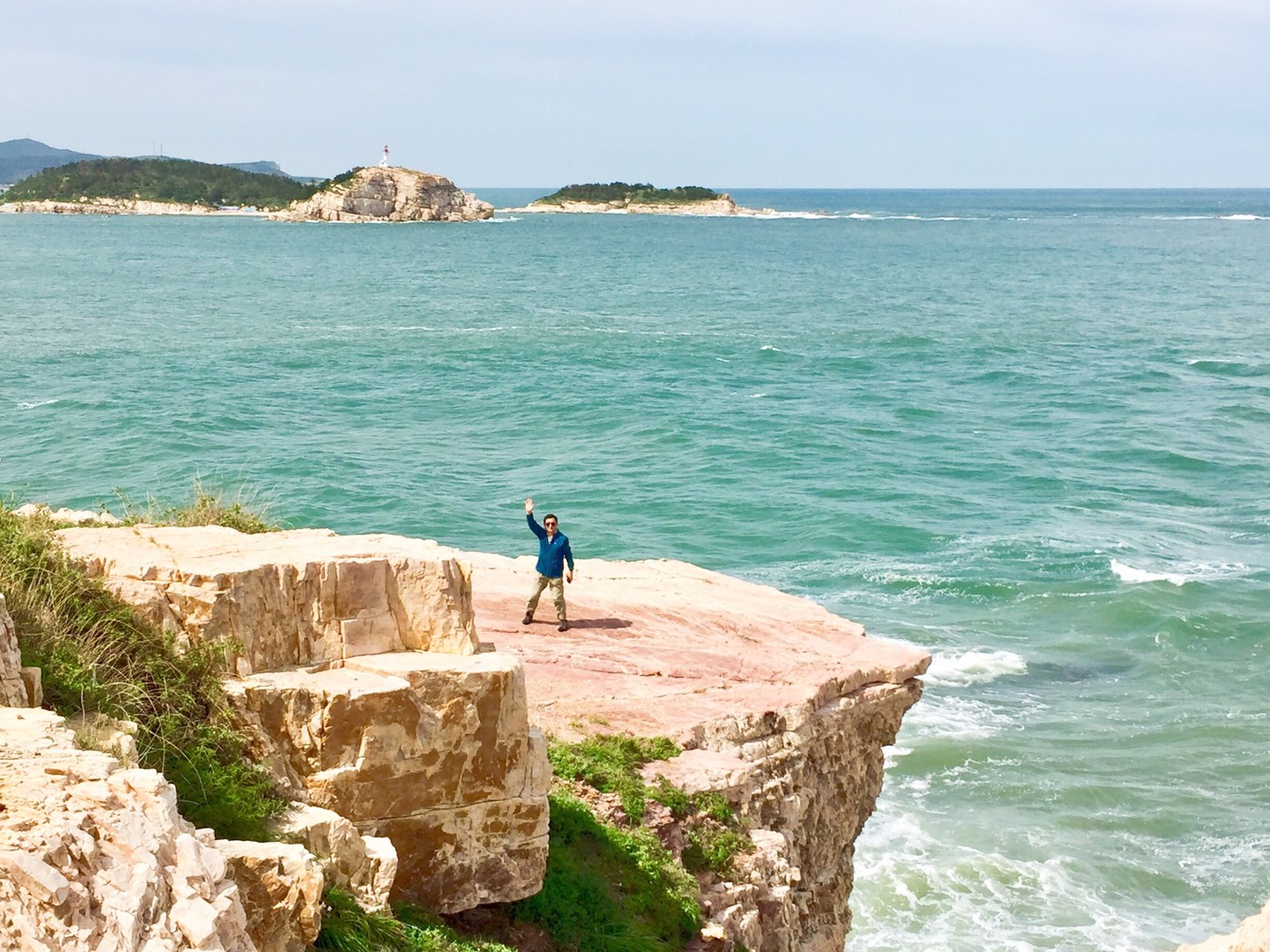 8:15到達(dá)九丈崖,景區(qū)坐落于北長山島西北角,是1億年前的燕山構(gòu)造運動和喜馬拉雅山造山運動所形成的。