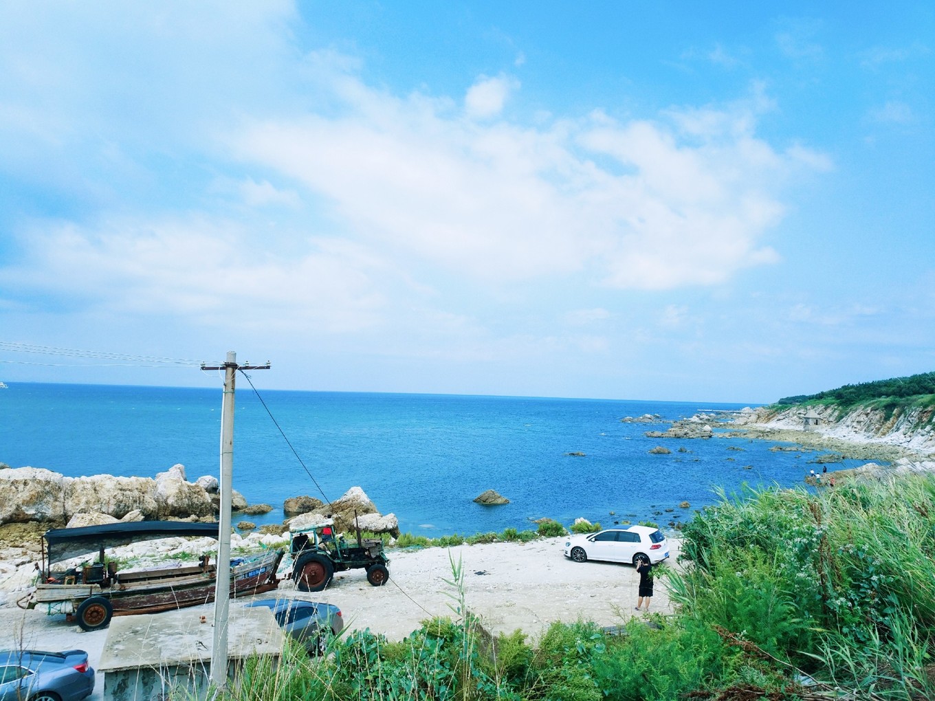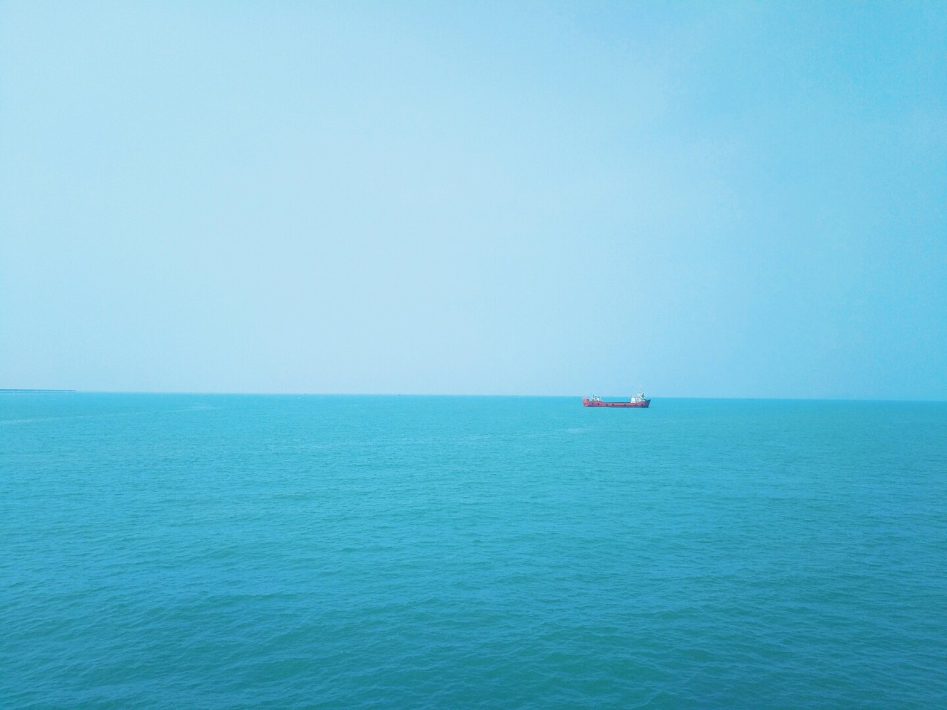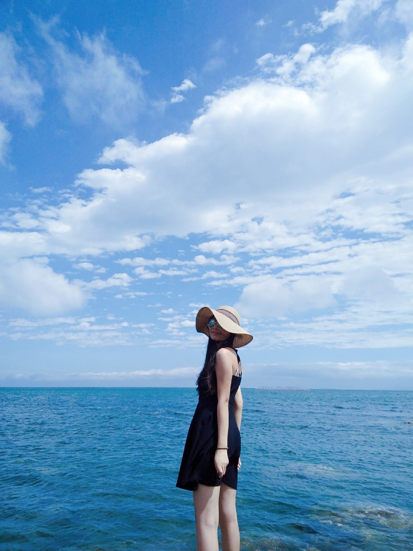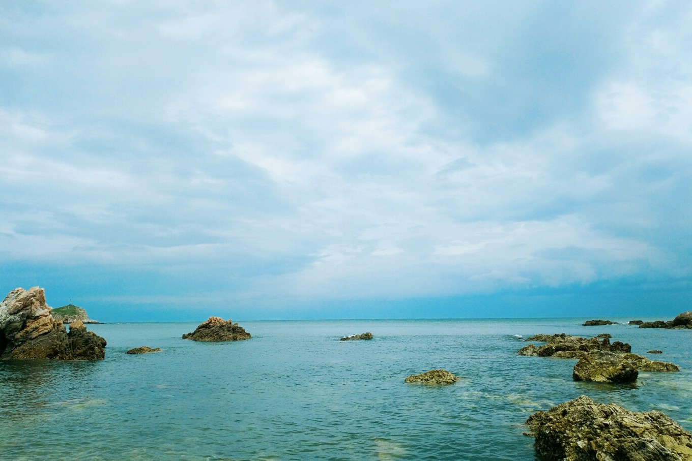 天氣特別好,天空和海水藍(lán)的不像話,海天一色