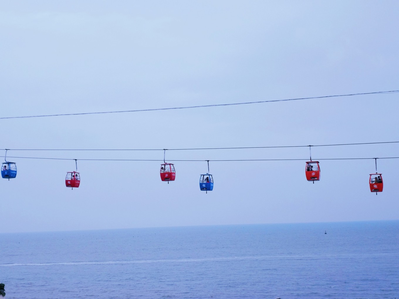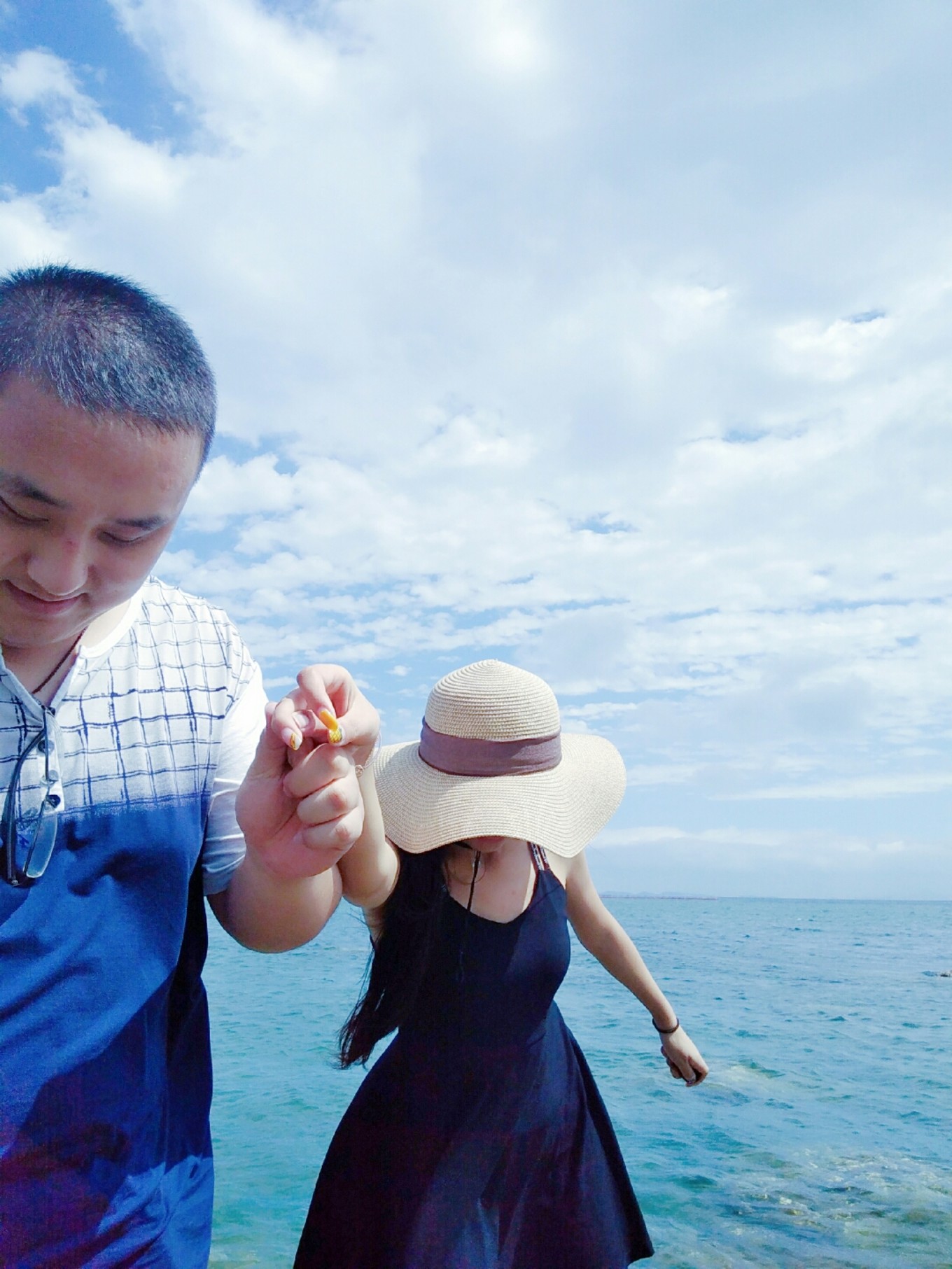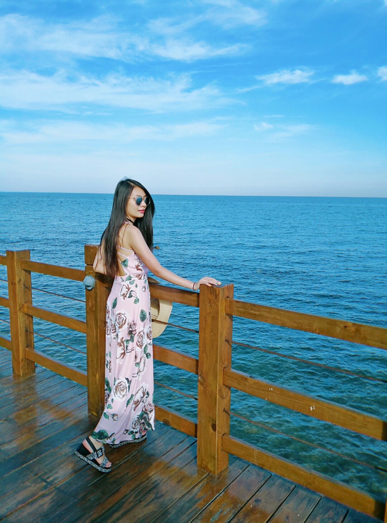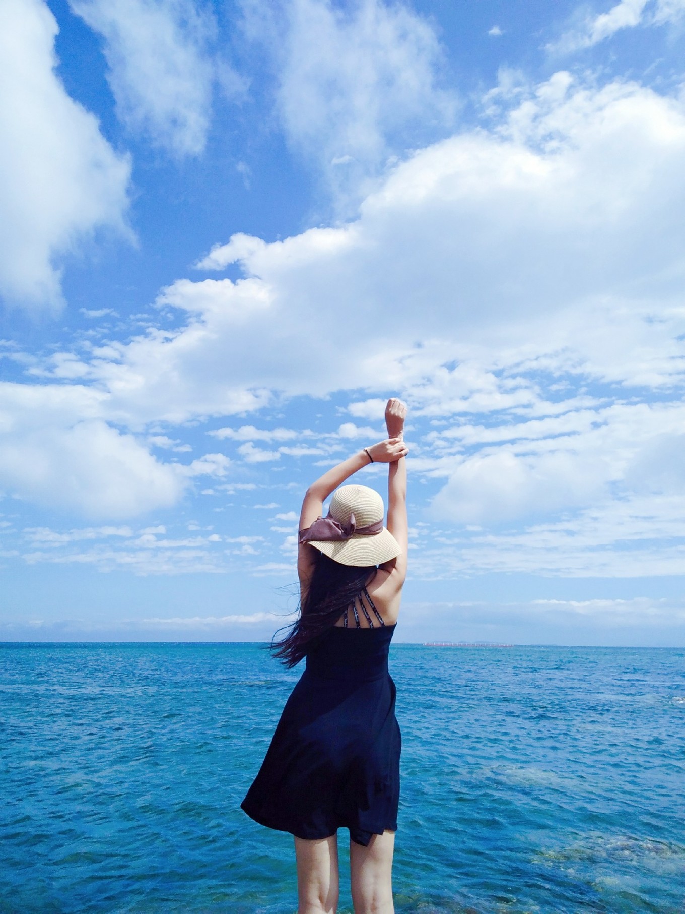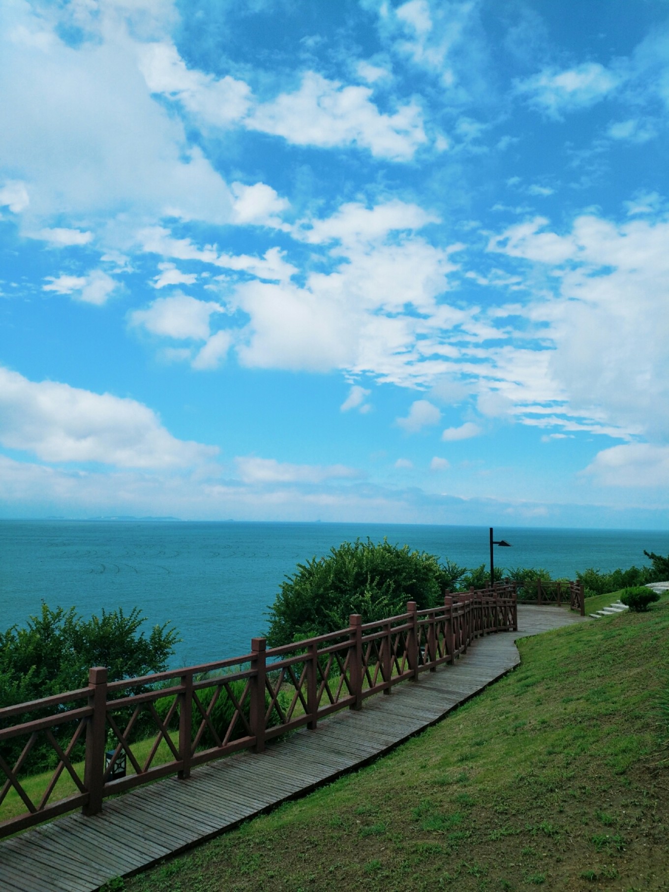 天氣特別好,天空和海水藍(lán)的不像話,海天一色
