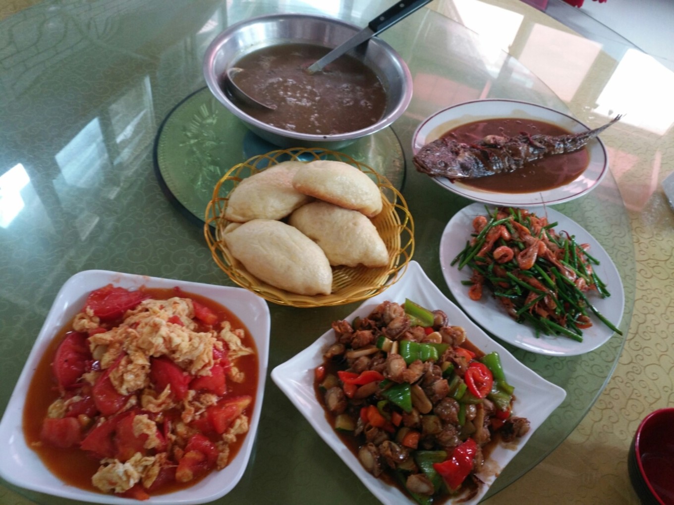 中午回漁家樂吃午飯休息了休息,由于前一天剩的太多了,就叫老板少做一些,吃不完太浪費(fèi)了。