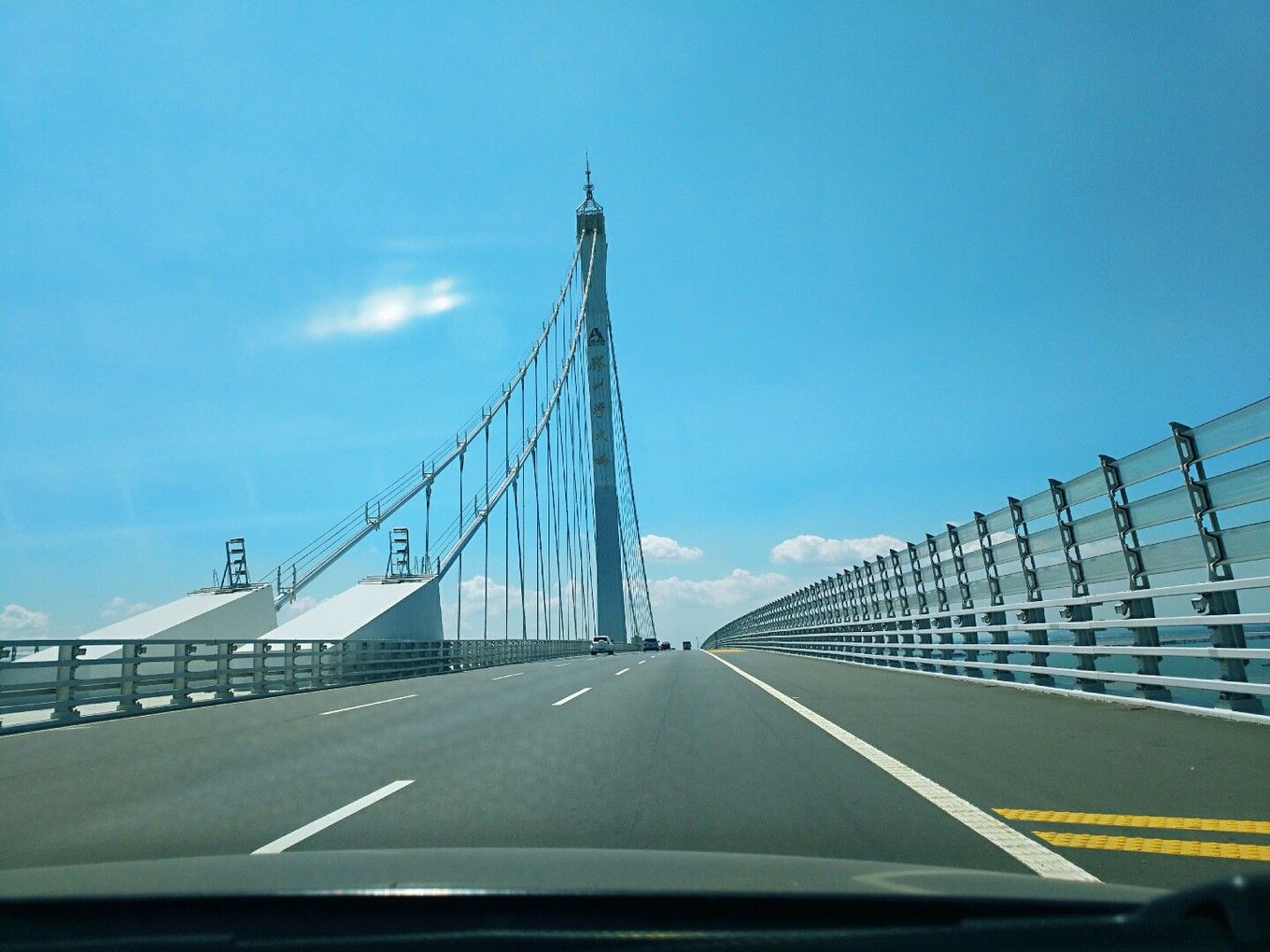 大概玩到中午11:30才離開八大關(guān)前往泰安,走的時(shí)候?qū)У穆肪€不從海底隧道穿了,改走上面的膠州灣大橋,景色很美,而且整個(gè)橋特別特別的長。