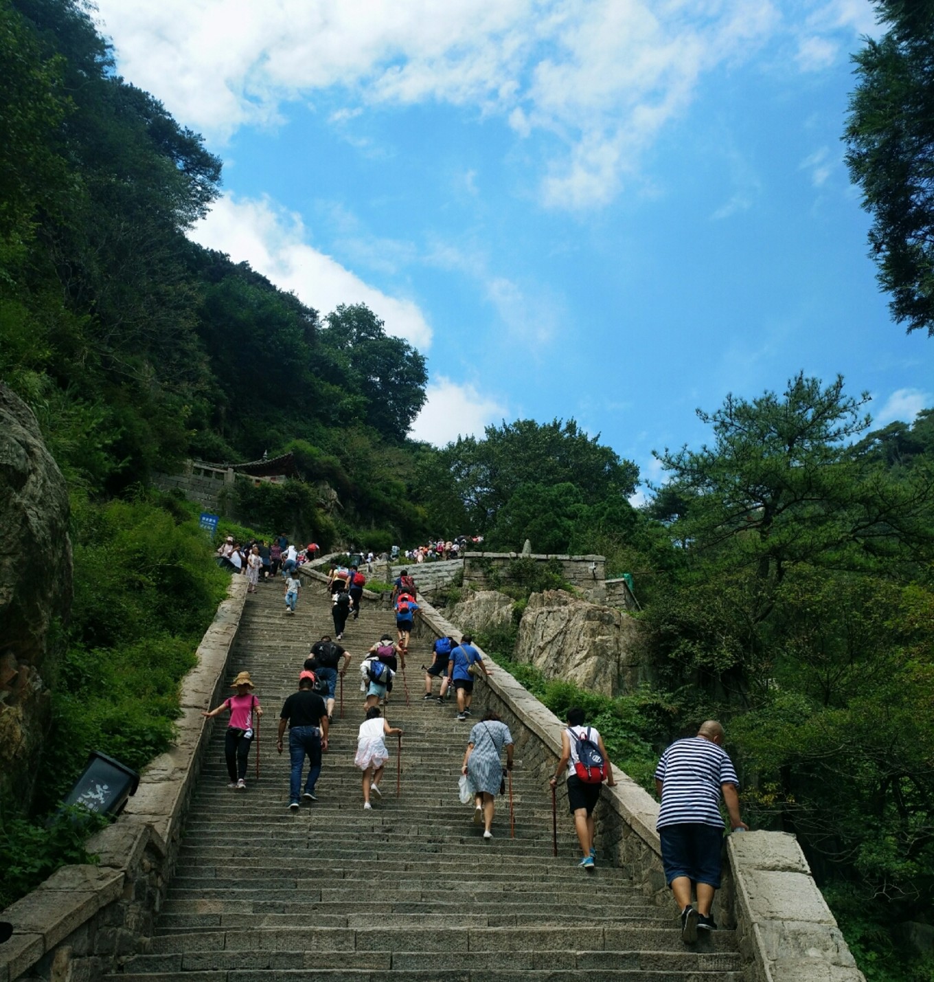 從中天門往下走就到了另一個(gè)入口處,從山下坐車到這里,然后從這里開始往上爬,就省略了紅門到中天門的路程。我們在這里休息了休息,補(bǔ)充了一些能量,因?yàn)楹竺孢@段路才是真正耗費(fèi)體力的,大概從11:10開始往南天門進(jìn)發(fā)。
