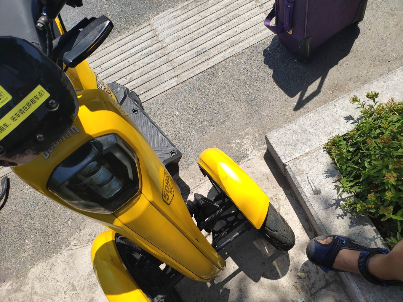 旅行箱和租的小黃車,鞋