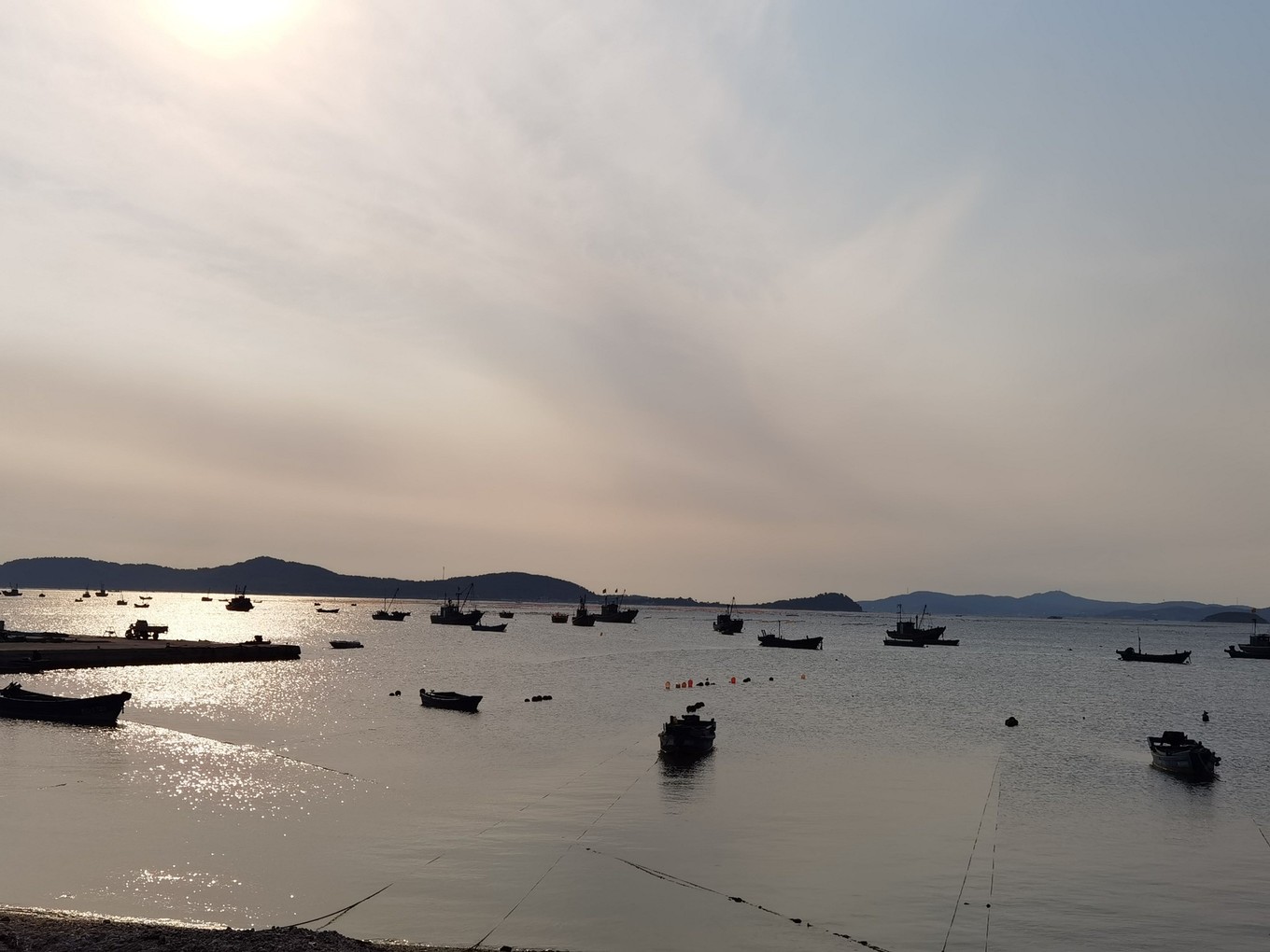 此刻,身旁的燈塔的燈光也感應般的亮開了,一眨一眨地閃動著,與更遠處的小島上的燈塔遙相呼應著,把夕陽大海與人類的生生不息聯(lián)系在一起,一幅生動的自然與生命的靈動的畫面,一曲悠揚動人的大海與人間的漁舟晚場開始奏響,撩人的暮色海歸,動扉的人與海情懷,給人遐想翩翩,癡迷陶醉,流連忘返。。。。。。