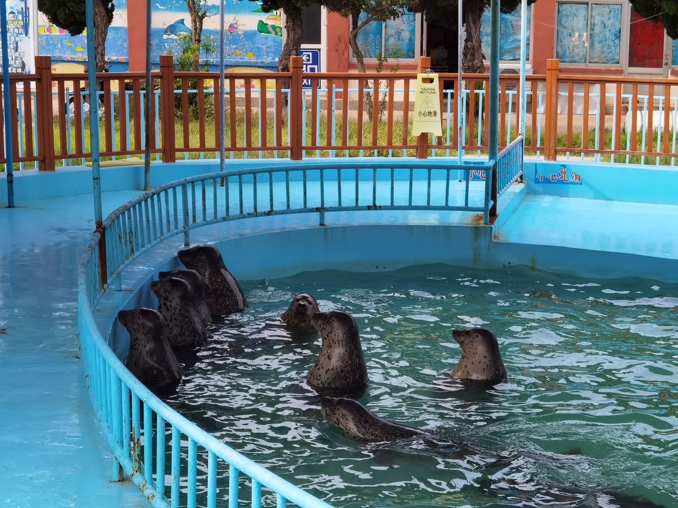 來到了月牙灣,一個漂亮的如月牙般的海灣,海灘都是一些可愛的小海石,有一個小的海洋館,里面有許多呆萌的海豹,當你拿著食物準備喂它們時,它們會爭相用鰭拍自己的胸口,仿佛在說“我要吃 我要吃”充滿著可愛,浸透出淳樸,仔細想一下又覺得有絲憐憫,原本這些海豹可以自由自在海里遨游的,如今,卻在水泥池子中的扮演憨態(tài)可掬,難道人間的隔離在動物界也有?