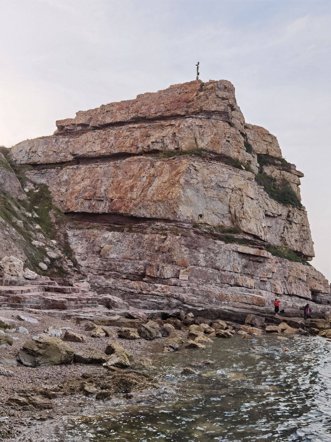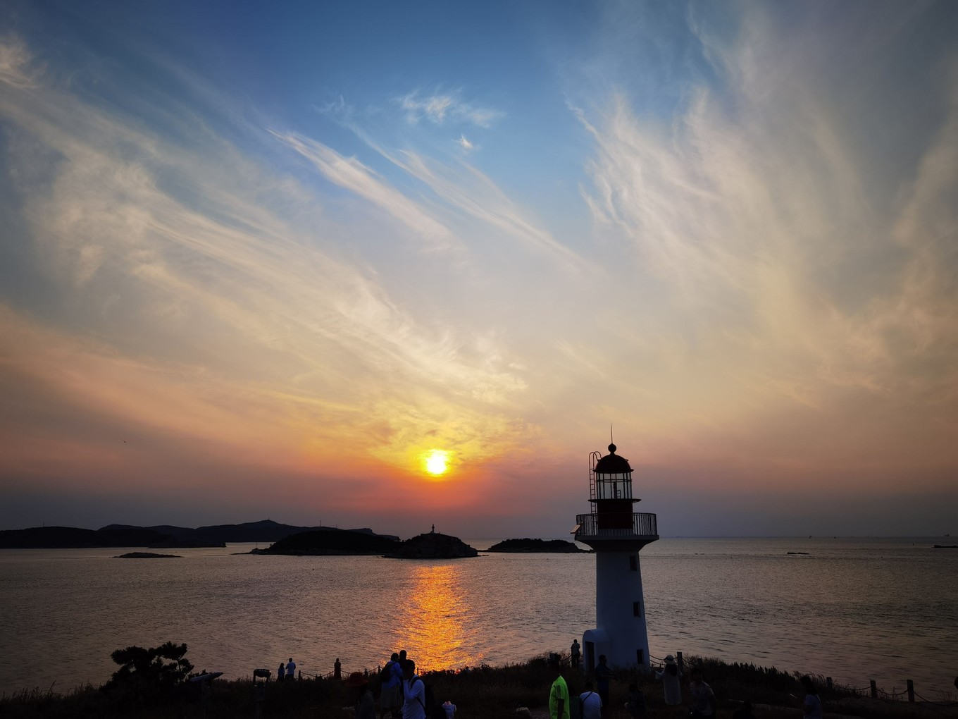 看日落的大幕的背景是在險峻懸崖邊,面對著大海,旁邊一座燈塔,很遠處又有起伏的島嶼,經(jīng)典海景的主要元素在這兒都有了,當我走到觀景臺時,有許多的人早已在山坡處占領(lǐng)著有利的機位,等待著日落時分來臨。