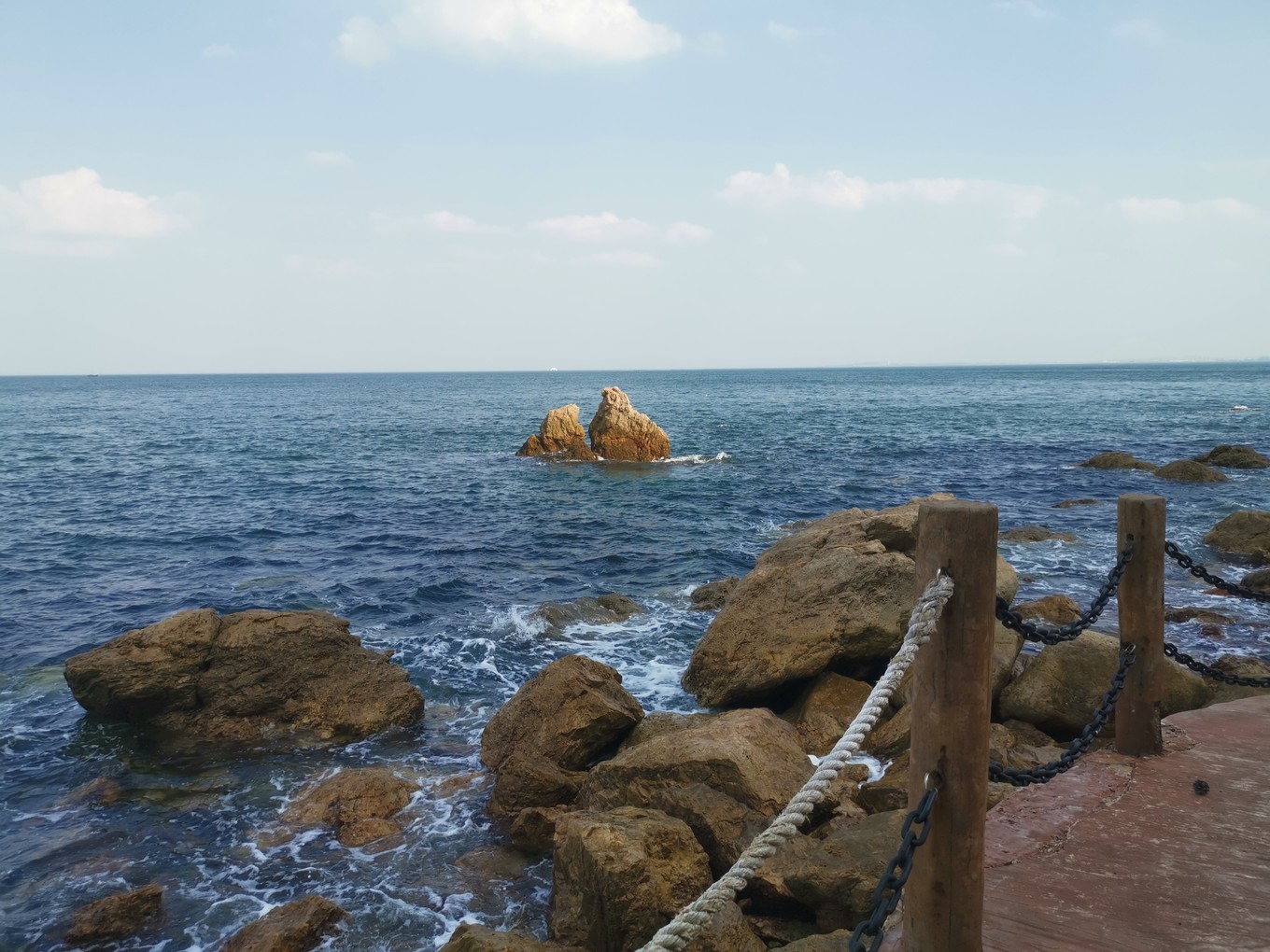 下午去的月亮灣九丈崖,個(gè)人覺(jué)得只去九丈崖就可以了,月亮灣跟九丈崖的那個(gè)灣一模一樣,沒(méi)有任何值得看的地方。九丈崖的路都是石頭,比較危險(xiǎn),最好穿防滑的鞋子。景色比我想的要好很多很多,可能因?yàn)轭^一天臺(tái)風(fēng)過(guò)境,當(dāng)天天氣特別好,天很藍(lán),海也非常藍(lán),隨手一拍就很好看,我在長(zhǎng)島的三天,天的顏色是越來(lái)越不藍(lán)的,第二天的海就偏綠一點(diǎn)點(diǎn),第三天就更綠了。所以去海邊,景色隨天變化,不要抱太多期望,隨性一點(diǎn)。