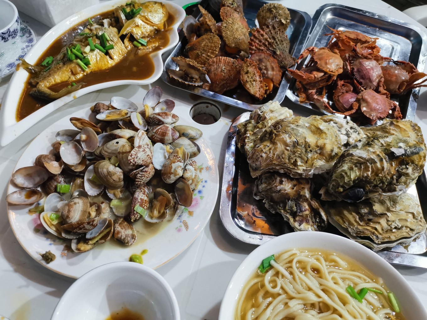 吃,這個(gè)可得好好說(shuō)說(shuō)了,吃了三天海鮮,粒米未進(jìn),有被坑的也有不錯(cuò)的,總結(jié)下來(lái)就是如果吃海鮮不要去任何一個(gè)店,直奔海鮮市場(chǎng),然后找民宿或者小店加工。到不是說(shuō)海鮮市場(chǎng)不坑人,雖然也會(huì)坑外地人,但即使坑,也比店里要?jiǎng)澦惴浅7浅6?。點(diǎn)名批評(píng)大眾點(diǎn)評(píng)第一第二的兩家店,都非常貴,只要你去過(guò)海鮮市場(chǎng)就明白他到底有多么暴利。正常人均80-100可以吃的非常好,巴掌大的梭子蟹,手腕長(zhǎng)的皮皮蝦,拳頭大的海膽鮑魚(yú),都很便宜鮮美。扇貝是最?lèi)?ài)。