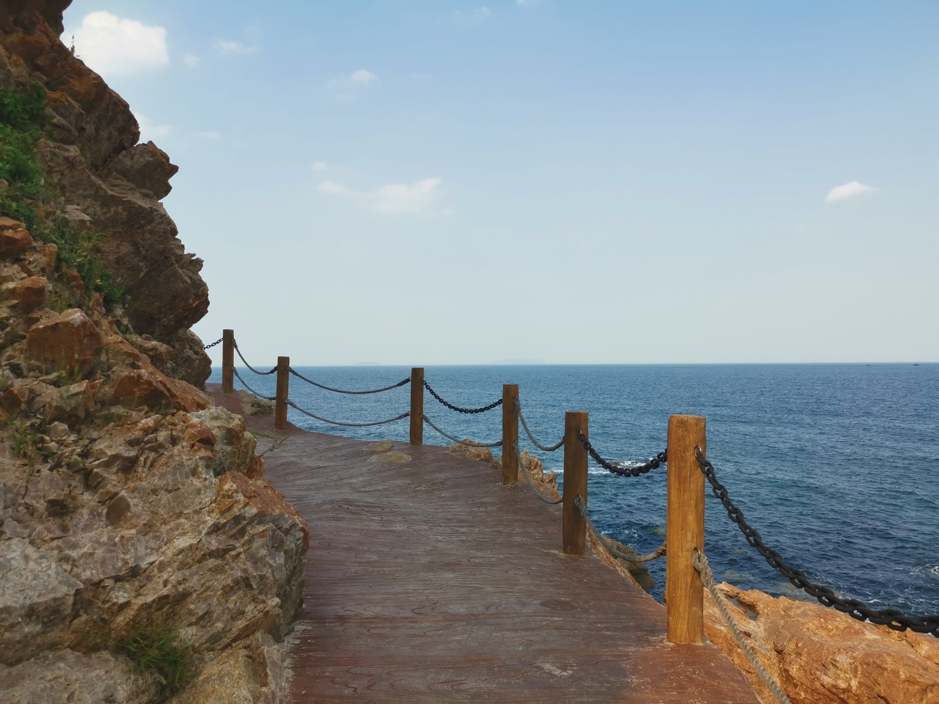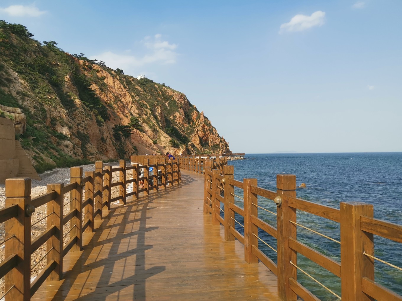 第二天繼續(xù)睡到自然醒,上午沿著海岸走出去覓食,回來(lái)睡個(gè)午覺(jué),半下午再去了另一個(gè)景區(qū),烽山林海,這個(gè)景區(qū)需要耗費(fèi)一點(diǎn)體力,走一圈出來(lái)至少得兩個(gè)小時(shí),還需要爬山。如果老人小孩走不動(dòng),可以坐電瓶車(chē)。普通成年人不建議坐,除開(kāi)爬山那一段,其他路段并不會(huì)很累。進(jìn)去之后就能看到黃海渤海分界線,一個(gè)大大的s型,走近了看能看到兩邊的海浪在分界線碰撞,很獨(dú)特的魅力。沿著海邊棧道一直走,會(huì)走到一片海灘,旁邊有一個(gè)很陡很高的臺(tái)階上山,真的巨累,像是爬泰山的那種陡。上去之后能看到一個(gè)亭子,真的是海天一線的壯闊魅力,視野特別寬闊。