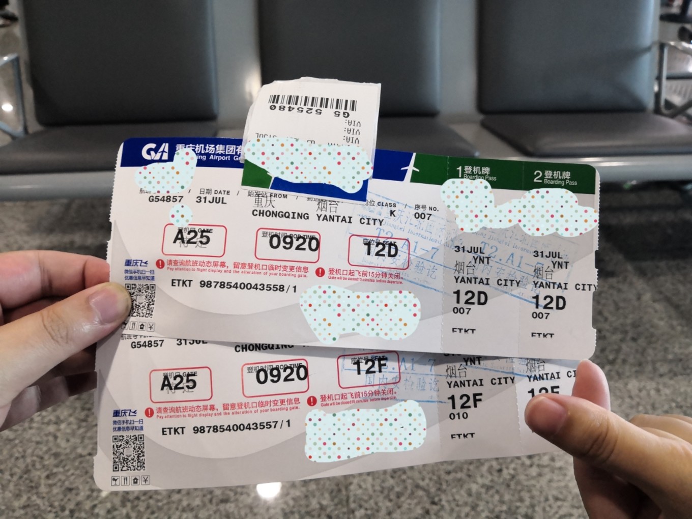 接下來就進(jìn)入正文啦,一早我們就搭乘10:05分華夏航空G54857次航班從重慶前往煙臺(該航班中途會(huì)經(jīng)停巫山),正式開始我們的海島之行啦。去之前各種擔(dān)心,因?yàn)樘鞖忸A(yù)報(bào)顯示好幾天都要下雨,但到了之后發(fā)現(xiàn)是艷陽高照,天氣可好了