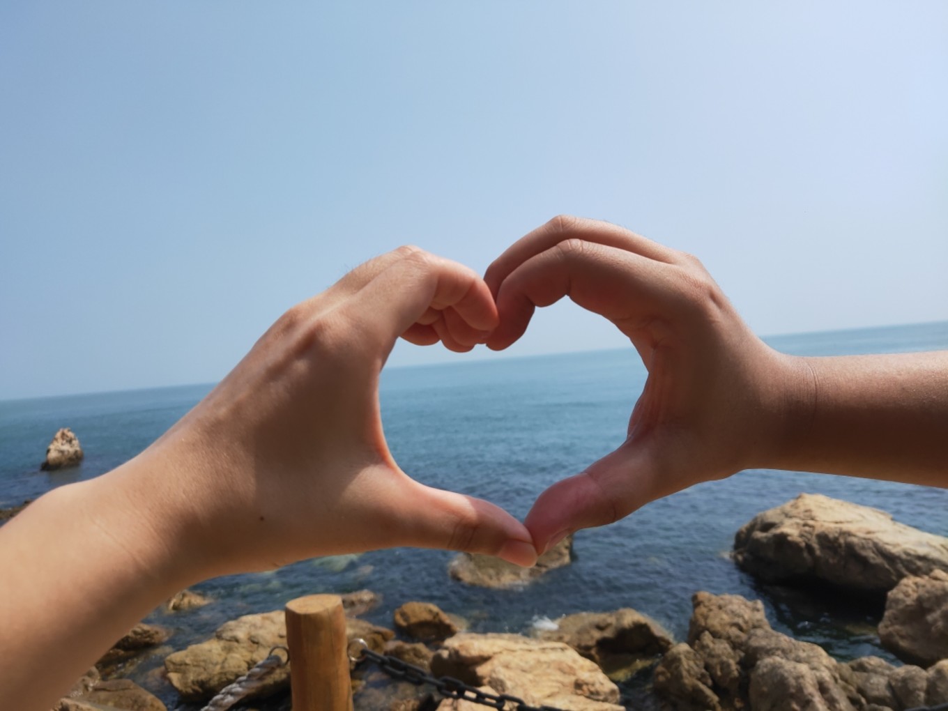 對著大海比個(gè)心