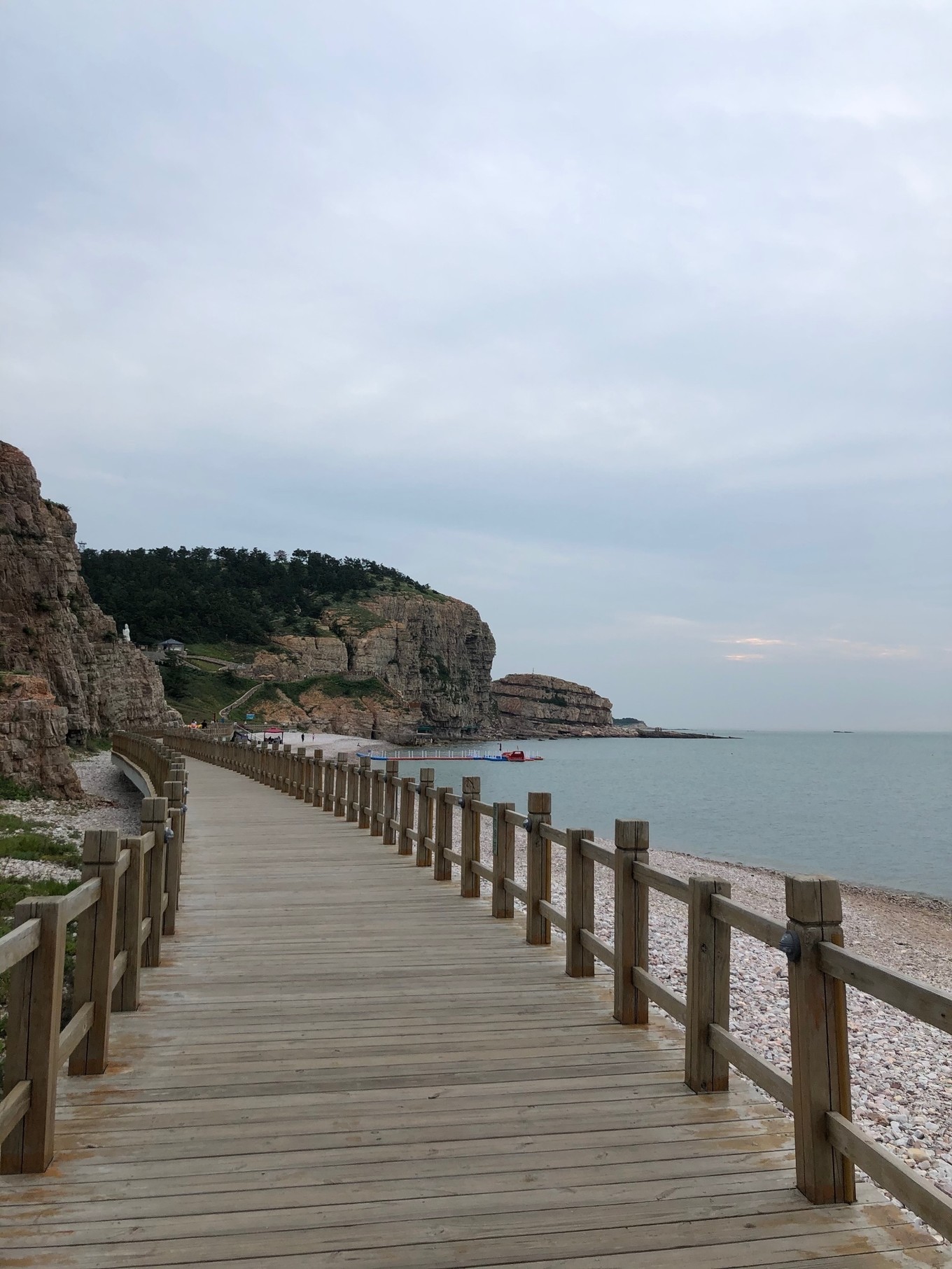 DAY 3:7月27日一早司機就來接我們了說是有趕海在峰山的海邊,但是我們?nèi)ピ缌?點半才退潮,只能先游景點了。峰山一定要坐游覽觀光車到最高點,真不要挑戰(zhàn)自己走上去,第一站直接上山頂制高點俯瞰真?zhèn)€長島,第二站會到黃渤海交界處,然后沿著木棧道走可以到海邊,趕上退潮能撿到很多生蠔。我們收獲滿滿但是先生沒讓吃