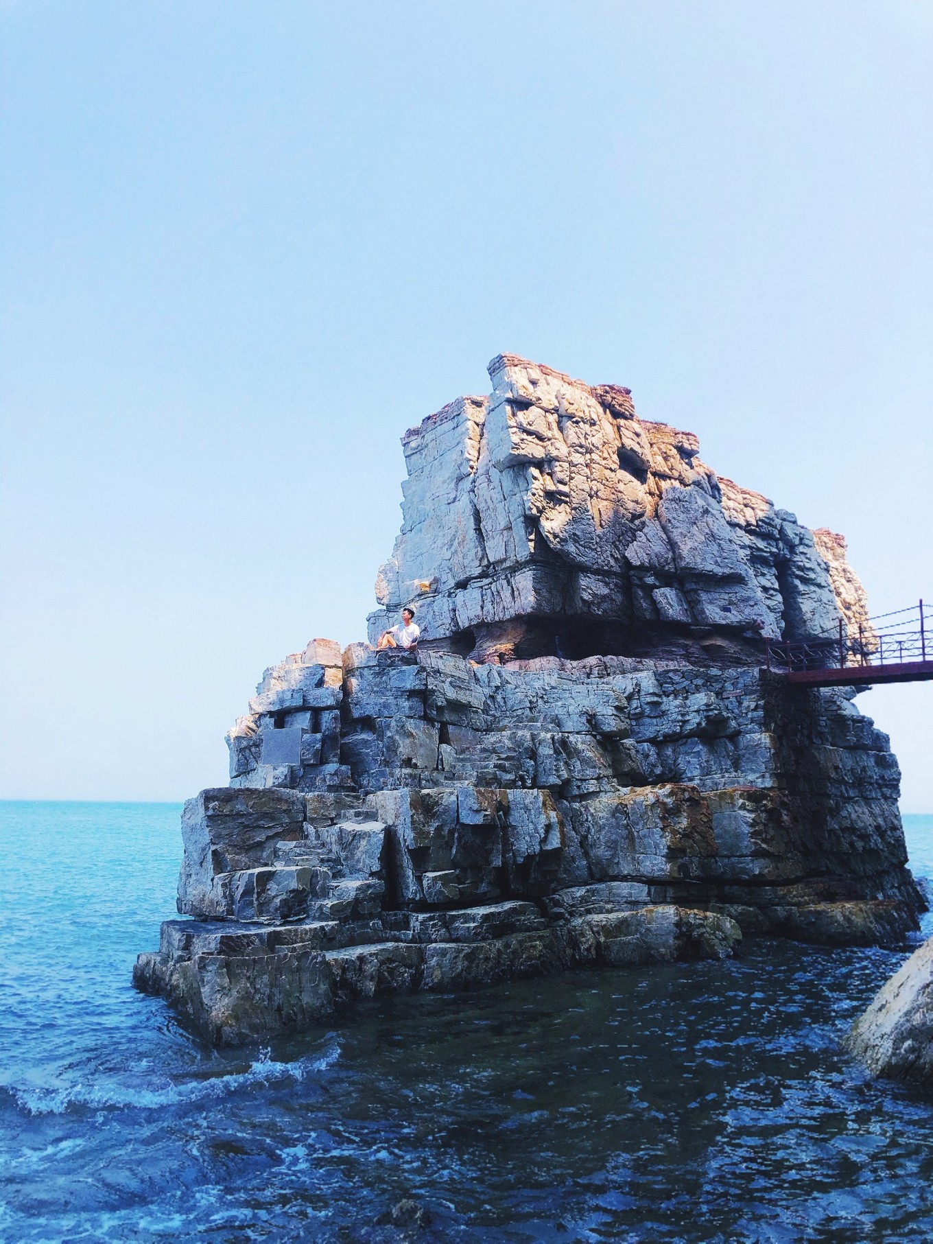 第三天·大黑山島-龍爪山去大黑山的游客比較少所以船的班次比較少,在海上游碼頭買(mǎi)的早上八點(diǎn)海馬5號(hào)船票。海馬5號(hào)出航時(shí)間是長(zhǎng)島-大黑山 8:0014:00 大黑山-長(zhǎng)島11:00 16:00 航程40分鐘。下船后有電瓶車(chē)到景區(qū),門(mén)票50元。景區(qū)不大但是風(fēng)景超贊,大黑山離城市比較遠(yuǎn),沒(méi)有污染水非常清澈,是本次旅行最美的景點(diǎn)。玩完正好趕上11:00回長(zhǎng)島的船。