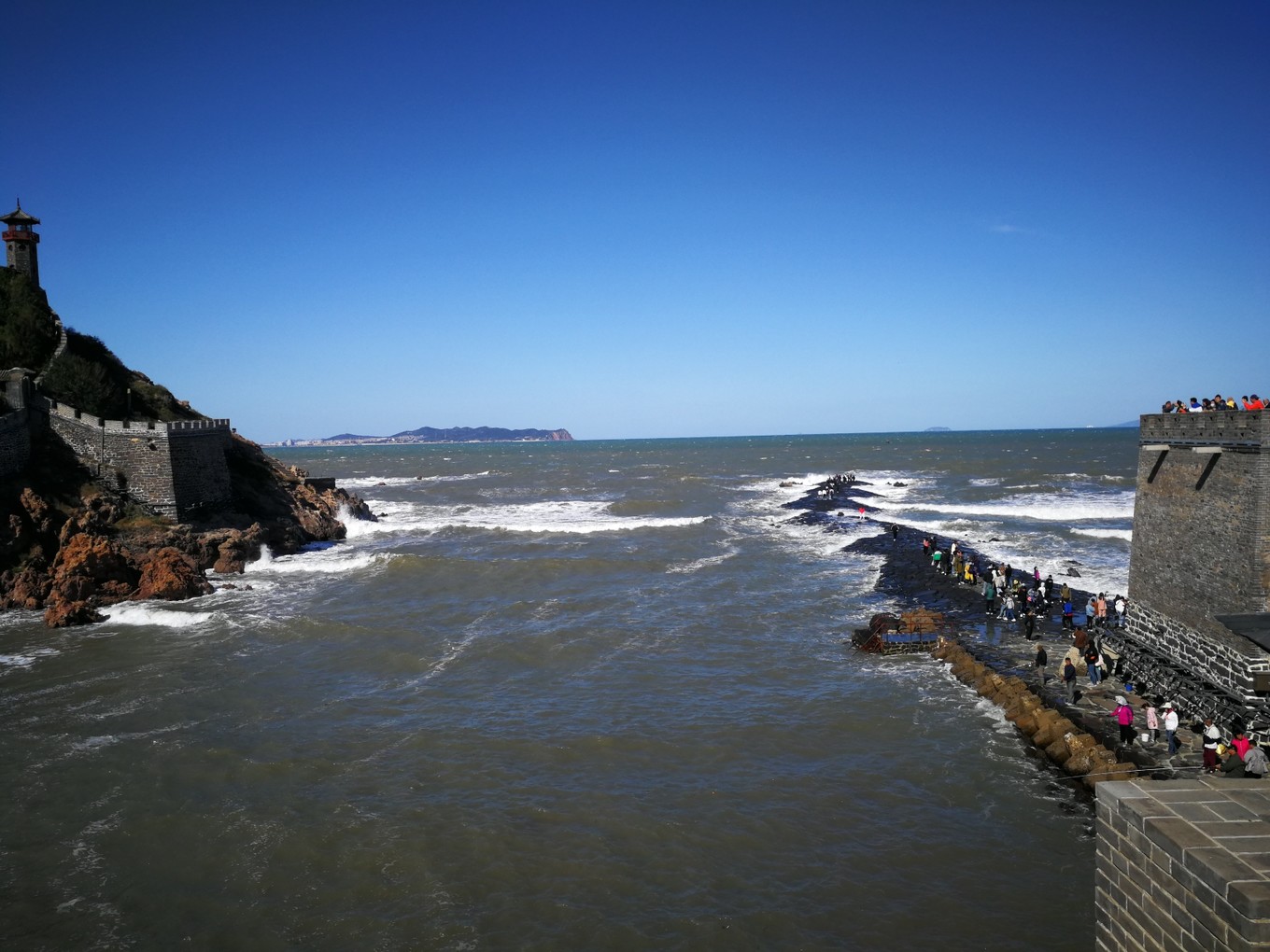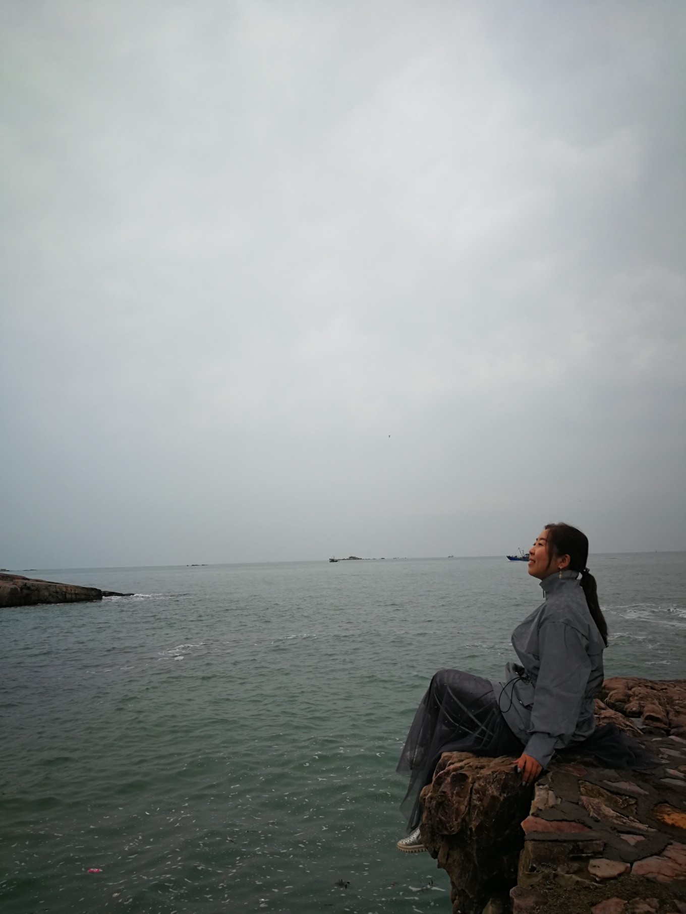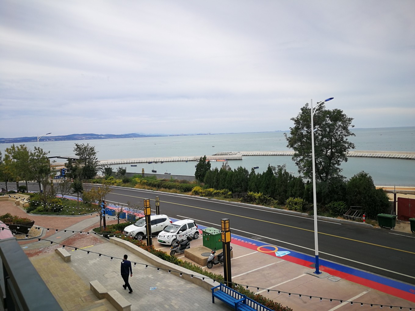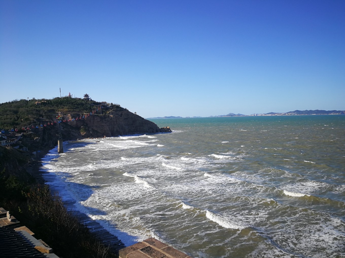 D2 :10月4日,第一次見到了白天的煙臺(tái)海邊,一下子興奮了,爬到了觀景臺(tái)(真冷