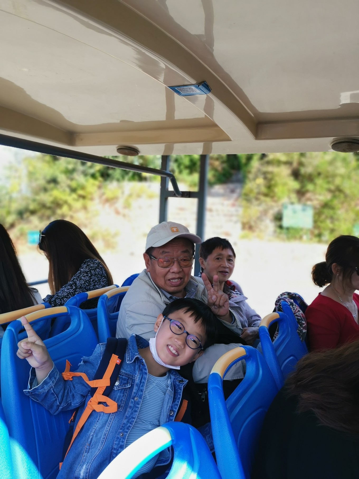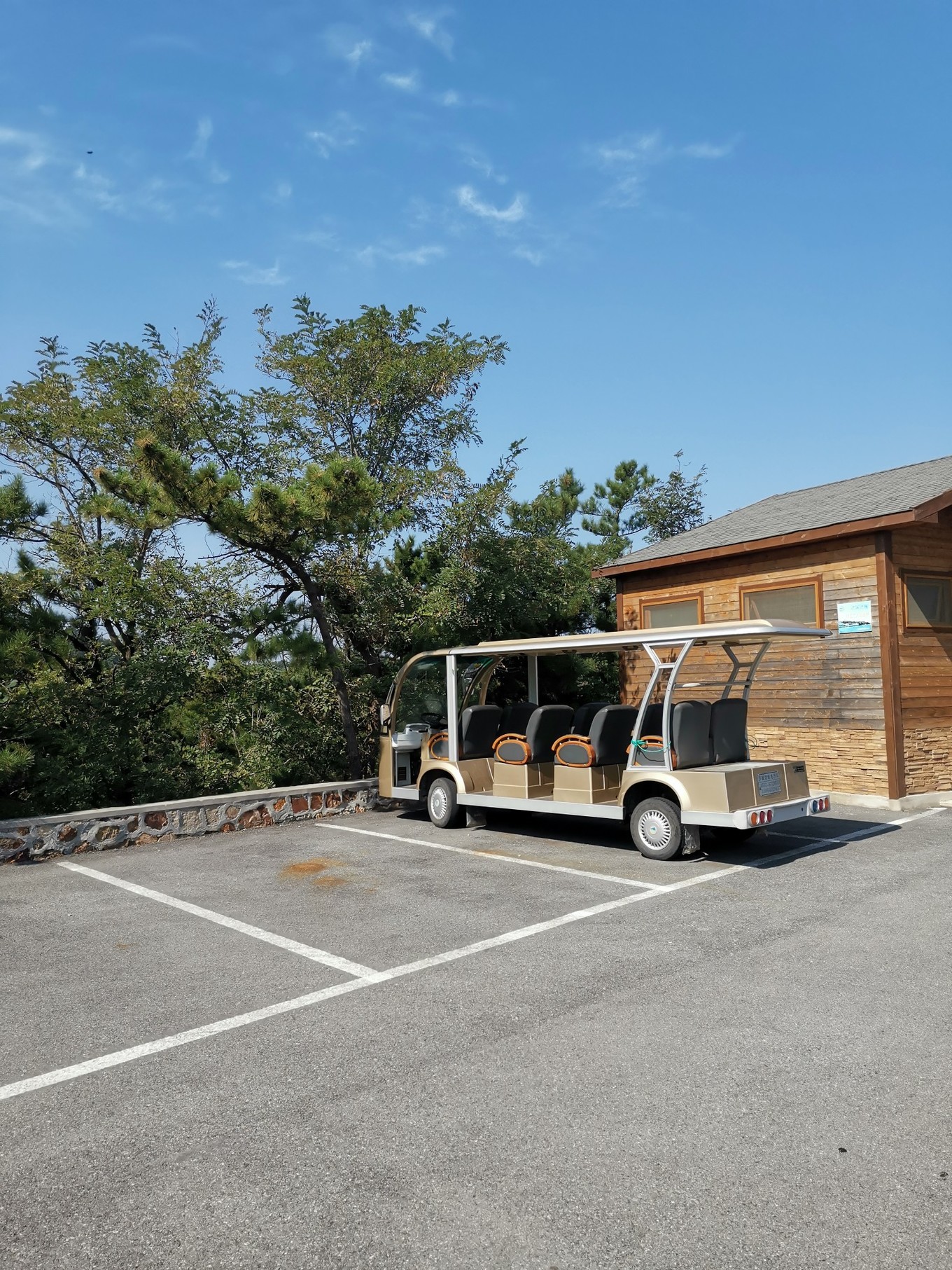 在海灘上留下長島印記,接著向林海烽山進(jìn)發(fā),年輕的小伙伴可以步行上山頂,不過多數(shù)游客都會(huì)乘坐景區(qū)觀光車,三個(gè)站點(diǎn)隨上隨下,一票往返35元/人。
