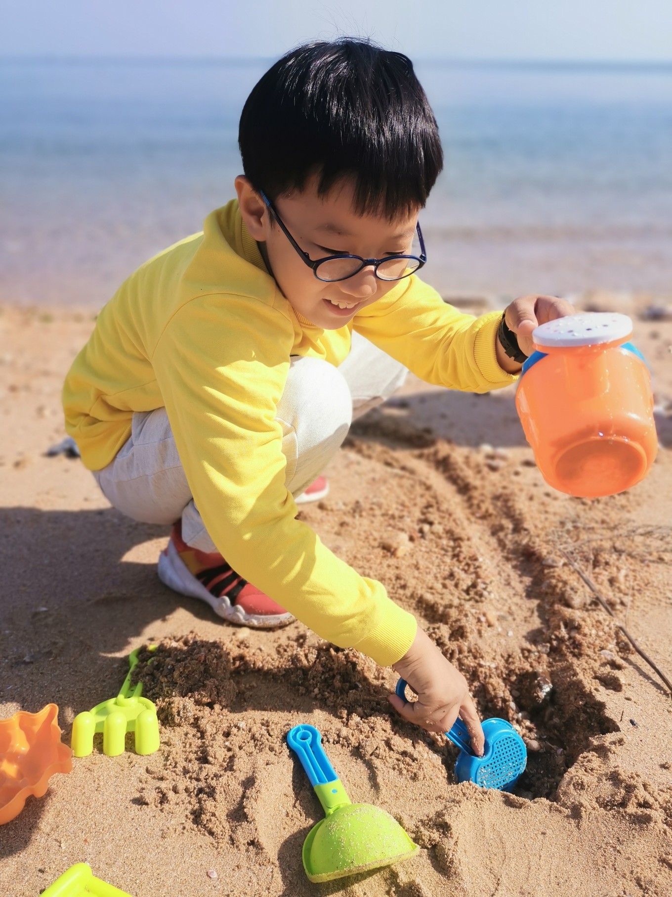 沙灘一直都是孩子的游樂場(chǎng),漲潮時(shí)間修好的堤壩很快就被淹沒了,為了搶險(xiǎn)小朋友的褲子和鞋子瞬間全濕,開心就好啦!幸好提前準(zhǔn)備了備用的鞋,秋季海邊必備!