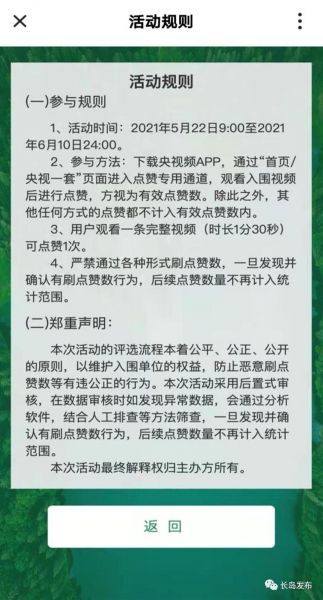 經(jīng)過初篩、復(fù)評層層選拔、精挑細(xì)選,長島“斑海豹”視頻從156期《秘境之眼》節(jié)目脫穎而出,成功入圍32強(qiáng)。央視頻APP平臺央視一套特設(shè)置評選區(qū)對最終入圍節(jié)目公開點(diǎn)贊,評選自2021年5月22日(生物多樣性日)9:00至6月10日24:00向大眾展開,最終結(jié)果6月12日(文化和自然遺產(chǎn)日)揭曉,屆時將根據(jù)最終點(diǎn)贊票數(shù)決出一等獎1名、二等獎2名、三等獎3名,優(yōu)勝獎26名。