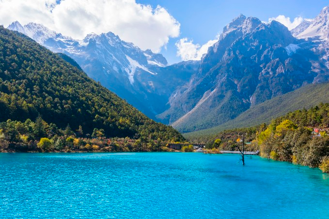 或者在山下探索藍(lán)月谷。 藍(lán)月谷是玉龍雪山冰雪融化成河水從山谷而過,因月亮在藍(lán)天的映襯下倒映在藍(lán)色的湖水中而得名。到了玉龍雪山不去藍(lán)月谷就不算到過玉龍雪山。