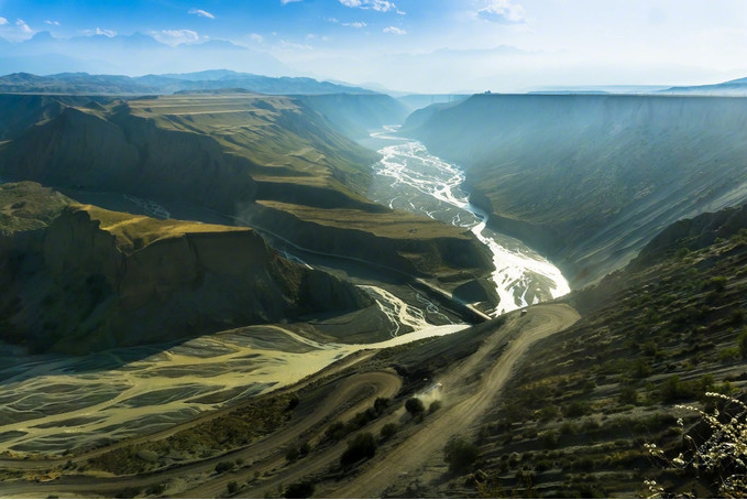 繞行和靜縣,我們沿著塔里木盆地的邊緣,會(huì)看到綿延不斷的戈壁沙漠,還有遠(yuǎn)處的巍巍天山山脈,有著與此前完全不同的視覺體驗(yàn),這里是塔里木河的源頭,是葉爾羌河的源頭,是南疆的開始。