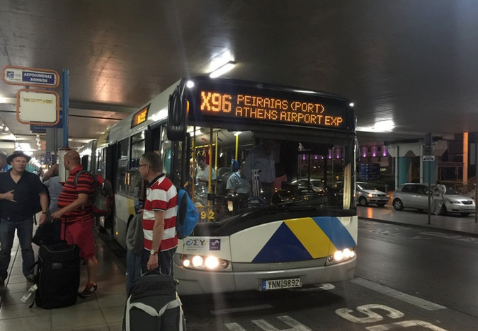 在雅典下飛機(jī)后,從入境大廳4號、5號門走出,右轉(zhuǎn)可看到X95路公交車站臺,搭乘X95路公交可到市中心的憲法廣場。時間大約1小時,車費為5歐元,全天24小時運營,是地鐵之外的首選。如果想從機(jī)場直接前往比雷埃夫斯港(Piraeus)港口,搭乘輪船前往愛琴海,可乘坐X96路公交車,車費5歐元。