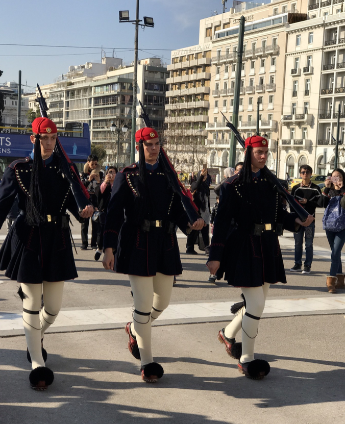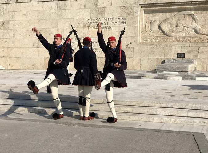 憲法廣場是希臘議會前的廣場,幾乎每次希臘發(fā)生大事件都會在這里慶?;虻磕睢W钪木包c莫過于無名烈士紀(jì)念碑,大多數(shù)游客來這里,都是為了觀看每小時的士兵換崗儀式。