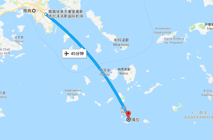雅典直飛圣托里尼機(jī)場,大約50分鐘。