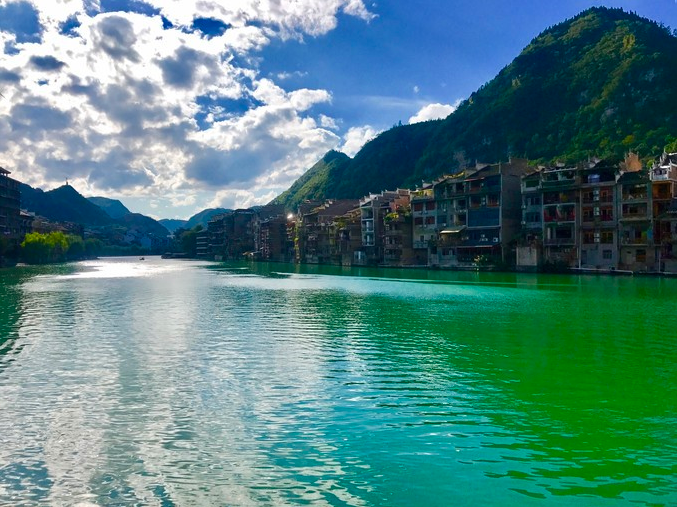 【鎮(zhèn)遠(yuǎn)古城】中國(guó)最美的十大古城之一, 山雄水美,石屏山如雄獅昂首挺胸,姿勢(shì)傲然,舞陽(yáng)河則如一條凝碧的玉帶,呈“S”型蜿蜒貫通全城,山水城渾然一體,倒影成畫,形成了“九山抱一水,一水分兩城”的獨(dú)特太極圖的風(fēng)貌,還被譽(yù)為中國(guó)山地貼崖建筑文化的博物館,城內(nèi)古街巷曲徑通幽,石橋城垣錯(cuò)落有致,極富韻味。