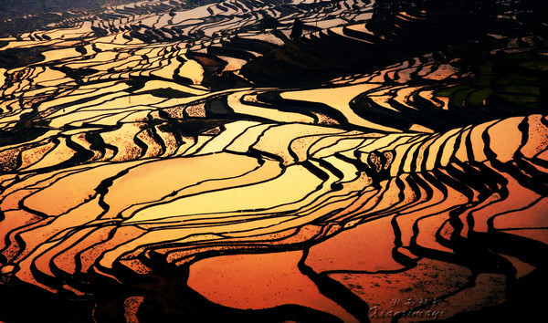 元陽梯田攝影技巧九:如果是攝影發(fā)燒友,建議深入到比較偏遠的團結(jié)鄉(xiāng)金竹寨,這里的梯田線條細密清晰,極具裝飾的美感。