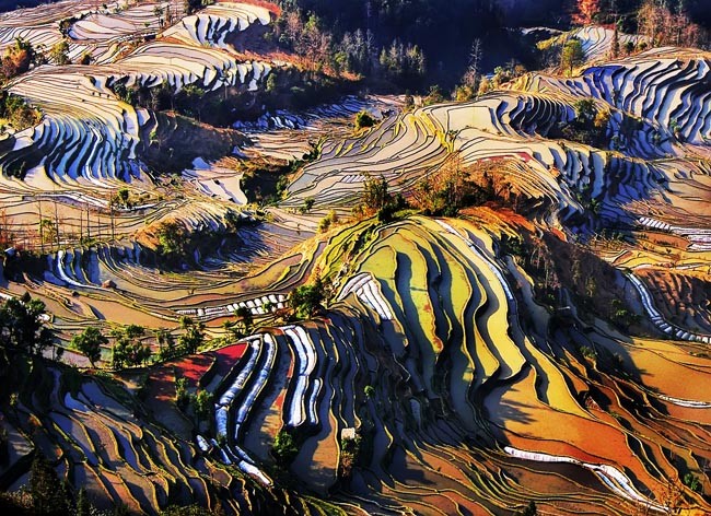 1.如果是攝影發(fā)燒友,建議深入到比較偏遠(yuǎn)的團(tuán)結(jié)鄉(xiāng)金竹寨,這里的梯田線條細(xì)密清晰,極具裝飾的美感。