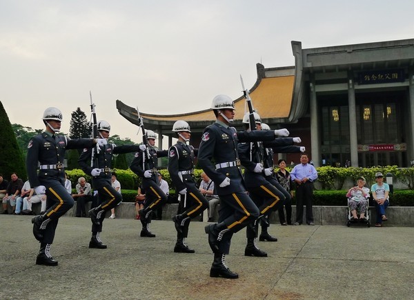 內(nèi)禮兵換崗儀式由臺(tái)灣陸海空三軍儀隊(duì)輪派擔(dān)任,禮兵勤務(wù)為每日9-17時(shí),每小時(shí)整點(diǎn)換班行禮。