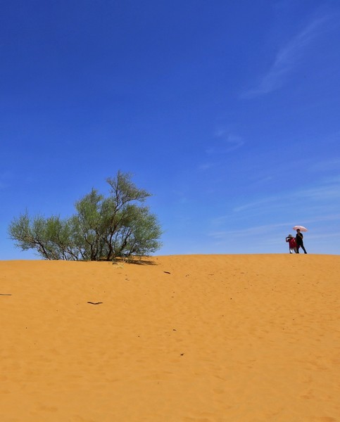 沙山北面是浩瀚無垠的騰格里沙漠,而南面則是一片郁郁蔥蔥的沙漠綠洲。游人既可以眺望包蘭鐵路如一條綠龍伸向遠(yuǎn)方,又可以領(lǐng)略一下沙漠行旅的味道。