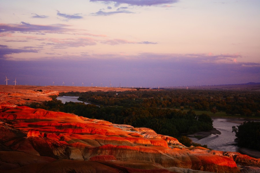 “一河隔兩岸,風(fēng)景兩重天”的五彩灘,在幾乎寸草不生的河灘上出現(xiàn)了紅、綠、紫、黃、棕等鮮艷的色彩。在河水的映襯和夕陽(yáng)的照射下,當(dāng)你走進(jìn)這高低起伏的“丘陵”地帶,就如同走進(jìn)一個(gè)五彩斑斕夢(mèng)幻般的世界。