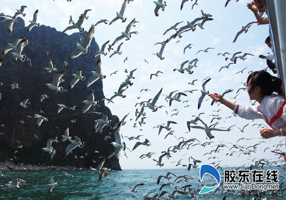 據(jù)工作人員介紹,萬鳥島唯有中部一巖洞可通至山腰,極其險(xiǎn)峻,人稱“通天路”,其他地方則無路可通。走在通天路上,隨手可以觸及到鳥兒的羽翼,等到登上山頂,鳥兒則又全在腳下了。每當(dāng)有船只駛向這里,萬千只海鷗就會展翅飛翔,潔白的羽毛霎時(shí)便遮住了天宇,靈動又壯觀。