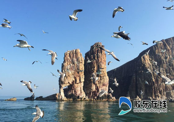 8月中下旬,采訪團(tuán)乘船抵達(dá)萬鳥島。遠(yuǎn)遠(yuǎn)望去,大量的海鷗棲息在島上,有的在展翅欲飛,有的則引喙舐羽,極其壯觀,“看,島上一片片白色是鳥屎!”船上一長島當(dāng)?shù)厝苏f,這么多白團(tuán)足以看出了島上鳥類的數(shù)量驚人。長島旅游攻略